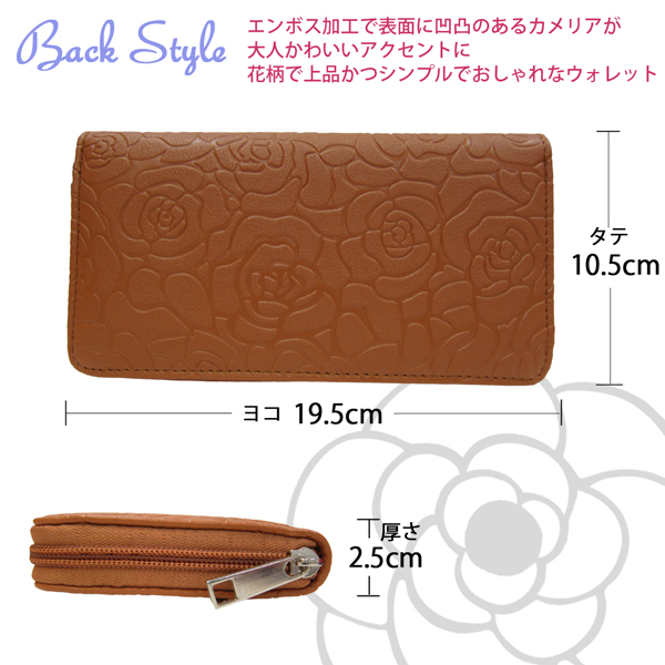 表面に凹凸のあるカメリアが大人かわいいアクセントを添えています。 小銭入れは人気のファスナー付き。カード収納枚数は12枚と十分で、札入れが4箇所あるので、 お札だけでなくレシートやクーポン等の収納にも優れています。 花柄で上品なだけでなく、スタンダードなフォルムで使いやすいお財布です。 シンプルでおしゃれなウォレットだからこそプレゼントにも最適。 ■カラー:キャメル ■サイズ(約):横19.5cm×縦10.5cm×マチ2.5cm (実寸につき誤差はあらかじめご了承ください) ■素材:外側/PU、内側/PU・ナイロン ■仕様:ファスナー開閉式、カード入れ×12、小銭入れ(ファスナー付)×1、札入れ×4、フリーポケット×2 ■付属品:専用BOX ■新品・未使用 --製品について-- 製作過程により多少の傷、汚れ、縫い目が粗い、塗装にムラ、接着剤跡等がある場合が御座います。 商品の仕様・デザインは、製品向上の為に予告なしに変更になる場合がございます。 ご覧のモニターやプラウザの設定、照明等により、画像と実物の色合いが、若干異なる場合が御座います。 これらについては予めご理解頂いた上でご購入お願いします。 | |