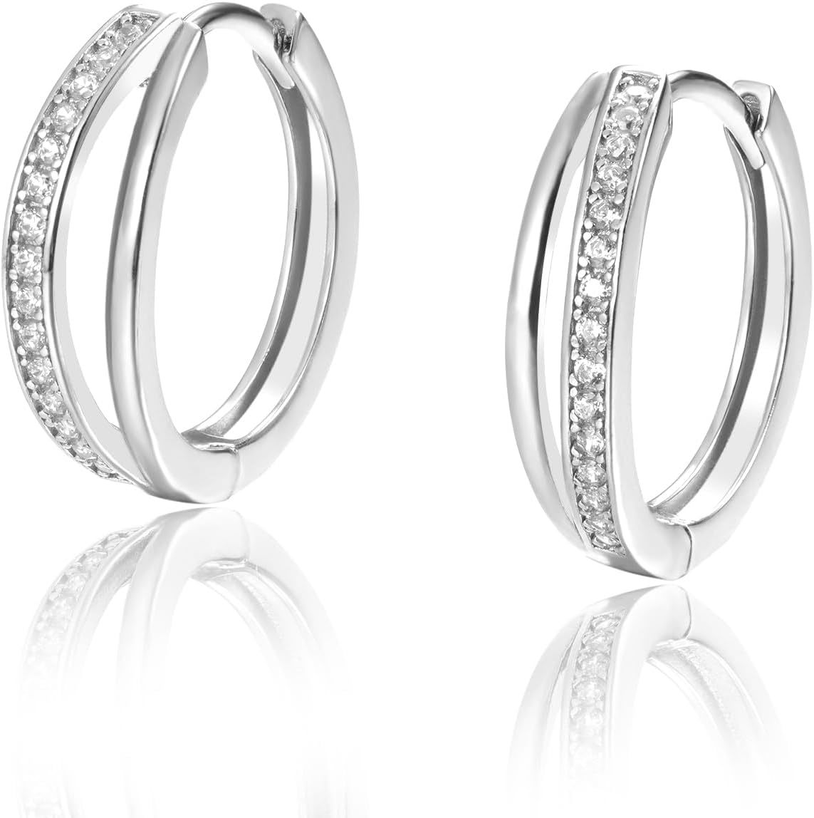 • 【デザインコンセプトと仕様】: “ダブルラッキー”ピアスは、ダブルリングの形でデザインし、喜び事が重なるという意味でめでたいことが次々と来る。純スターリングシルバーのトップキャッチでしっかりと耳にぶら下がる リングピアス。留め具の不要な遮断式タイプなので、着脱も簡単。ピアスサイズ:(縦)約15mm(横)約15mm。重さ:2.8g.軸長さ:約11mm、軸太さ:0.9mm-1.0mm(18G)。スワロフスキーの中でも最上級位AAAAAの「ピュアブリリアンス」シリーズジルコニアを使用で上質なスターリングシルバー925を採用、アレルギー対応なのでご安心使用してください。