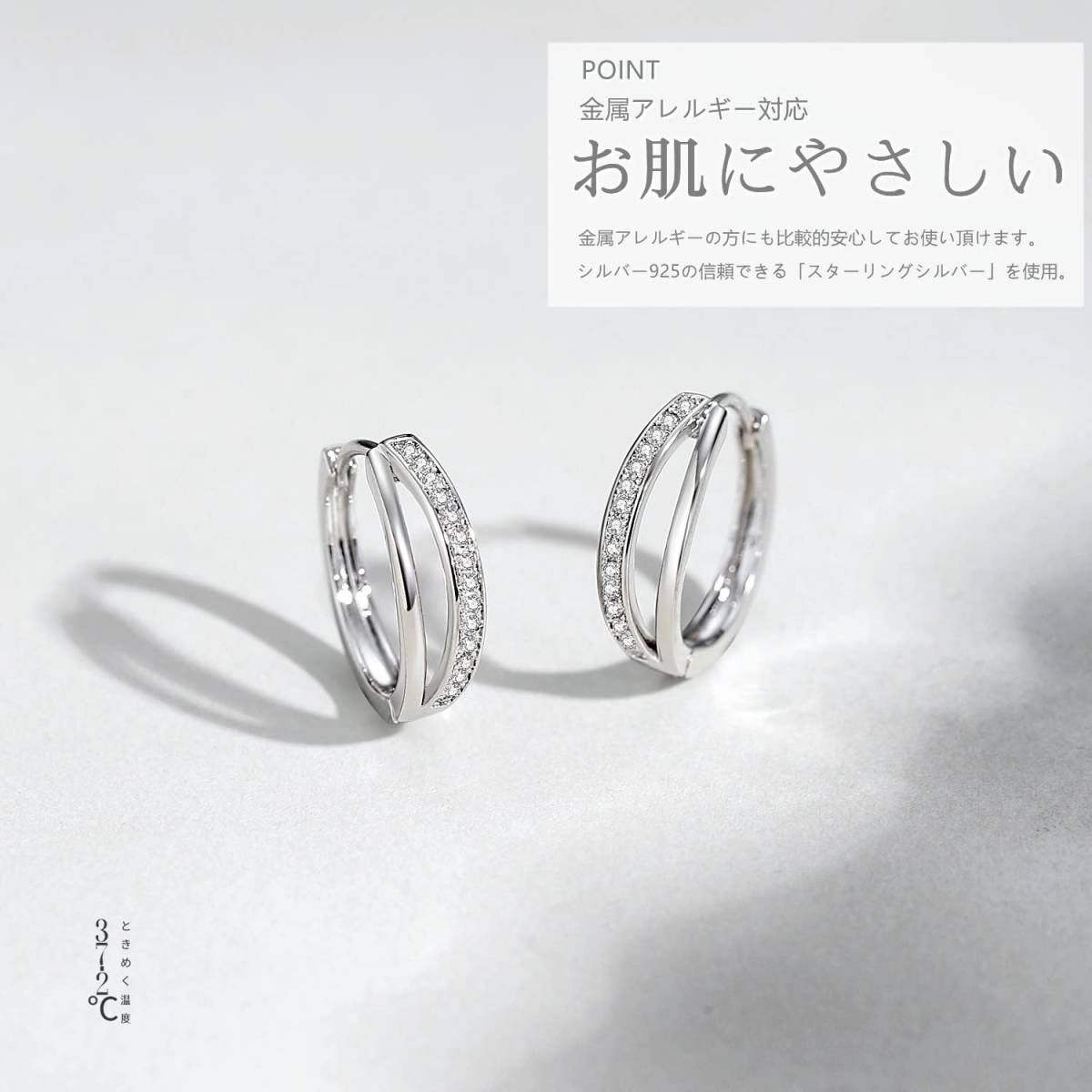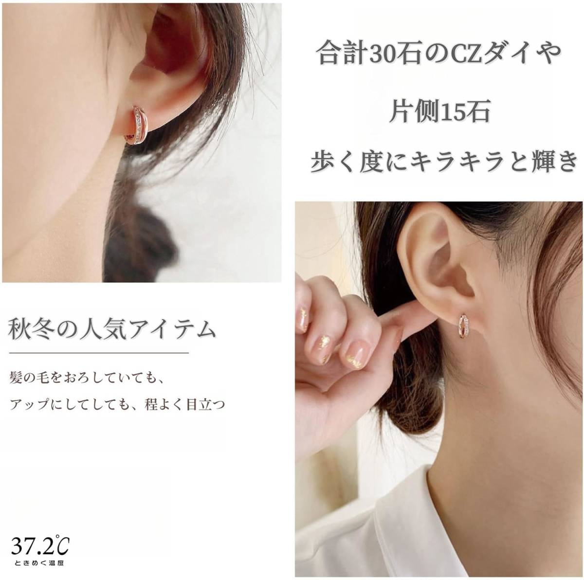 ピアス レディースフープピアス リングピアス 18Kコーディングシルバー925ジルコニアピアス シルバー