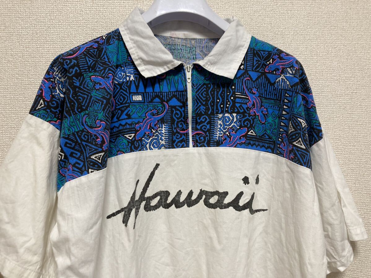 80's USAヴィンテージ ハーフジップハワイアンシャツ 半袖シャツ