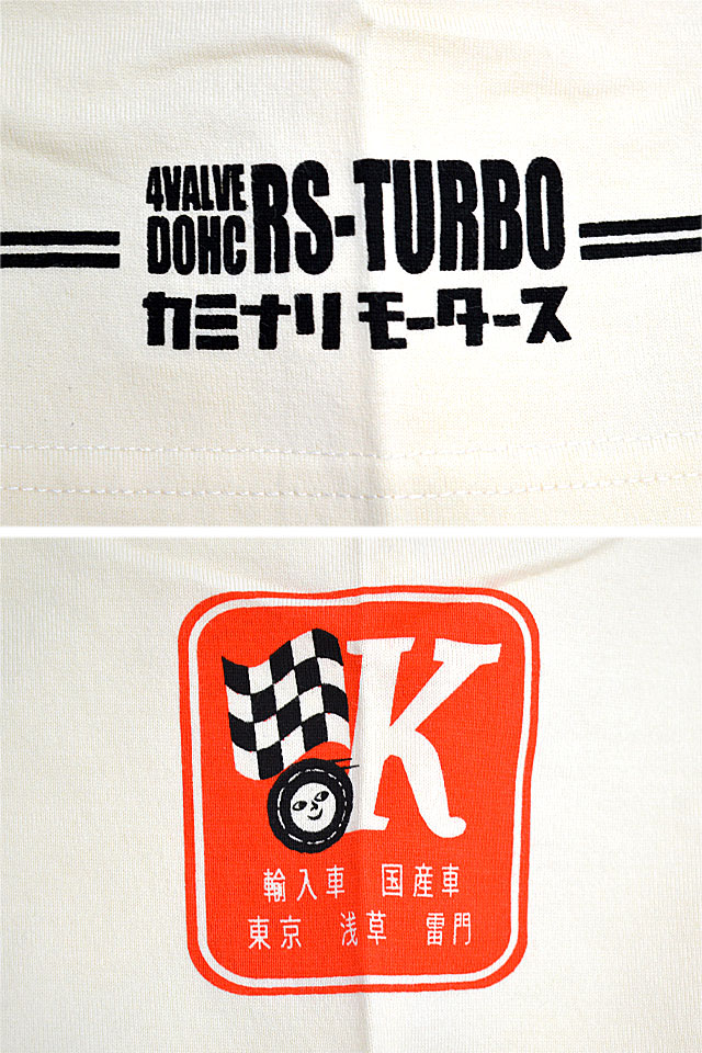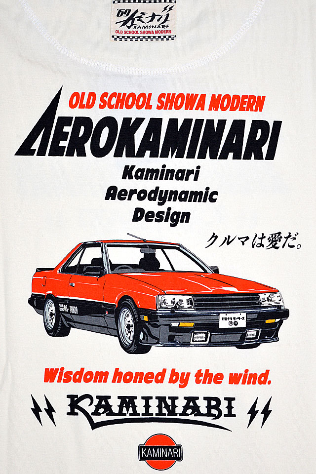 「JAPANESE BAD BOY」をコンセプトに掲げ、昭和の由緒正しき不良文化にロックなスパイスを注入したブランド「カミナリ」より「カーチェイス半袖Tシャツ(KMT-239)」が入荷してまいりました。 刑事ドラマの西部警察などで一世風靡した、名車のスカイラインRSターボをオマージュ。 右袖にはブランドの頭文字入りのワッペン風モチーフをプリント。 生地はストレッチのきいた、さらりとしたものを使用。 | |||||||||||||||||||||||||