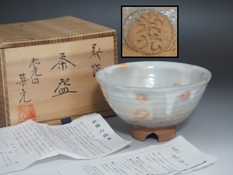B1053 萩焼 松光山 栄光 作 茶碗 共箱付 ☆ 茶道具 抹茶器 抹茶道具 茶懐石 茶事 茶の湯 抹茶碗 陶器 作家物 在銘 陶印 美品 良品 無傷 | ||
