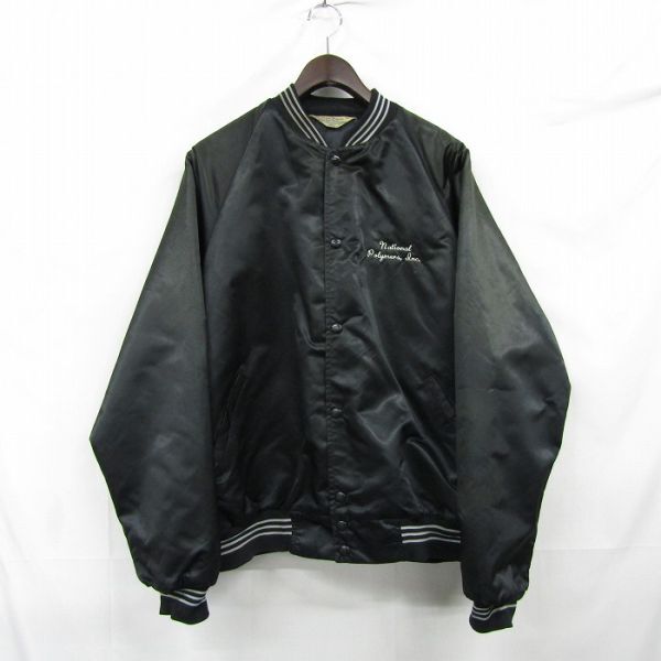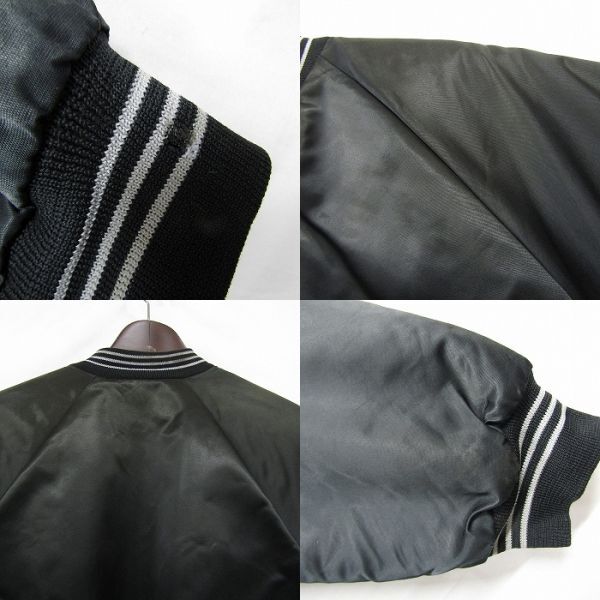 サイズ XL vintage スタジアム ジャンパー ナイロン ジャケット ブラック 中綿 裏地キルティング 古着 ビンテージ 4A0704