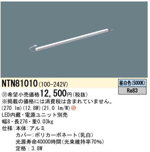 パナソニック Panaxonic NTN81010 シームレス建築部材照明器具 天井直付型・壁直付型・据置取付型 調光タイプ(ライコン別売) 昼白色 L276タイプ