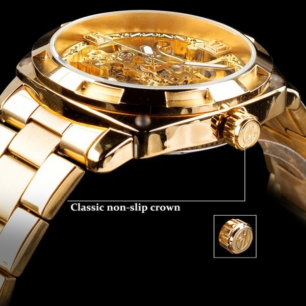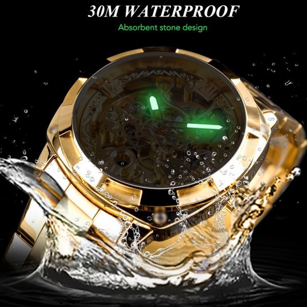 | ☆送料無料☆ 腕時計 メンズ FORSINING 海外ブランド 高級 レトロ 自動巻き 防水 スケルトン ステンレスバンド 機械式 ゴールド | |