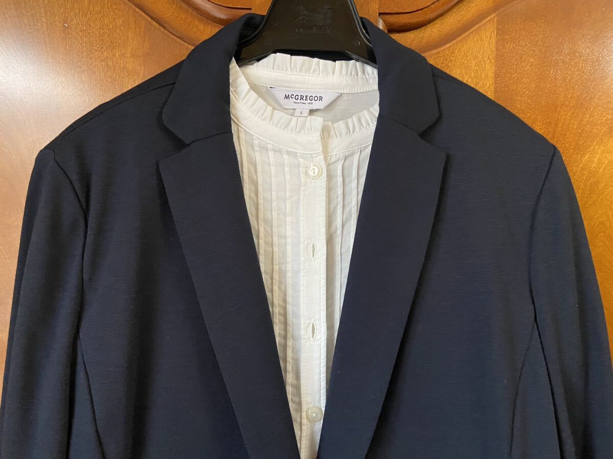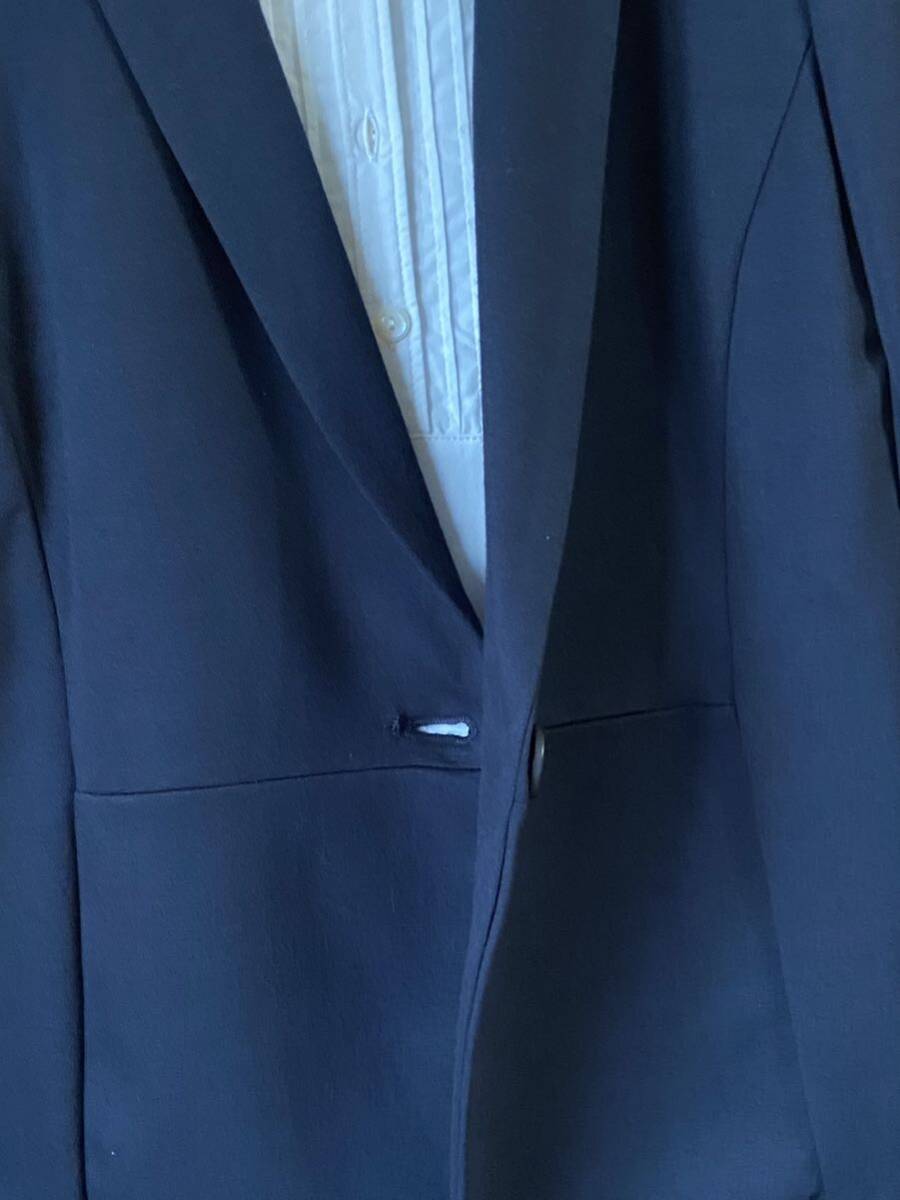 コムサイズムのレディーステーラードジャケット、お色は、ネイビー、サイズは、Lです。柔らかい生地のお仕立てです。着用回数2〜3回の極美品です。ジャケットのみの出品です。ブラウスは違います。