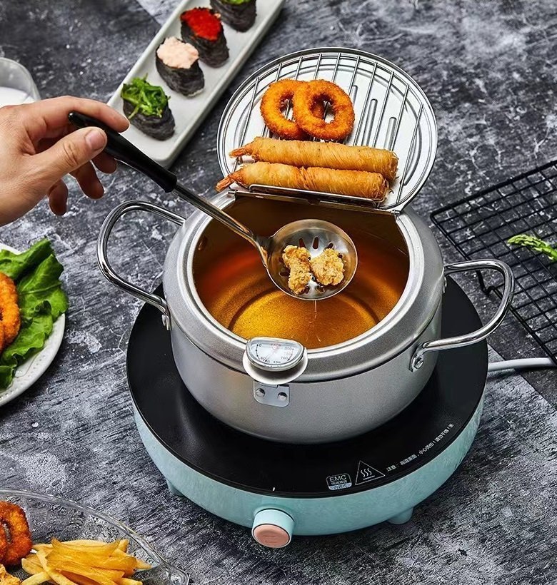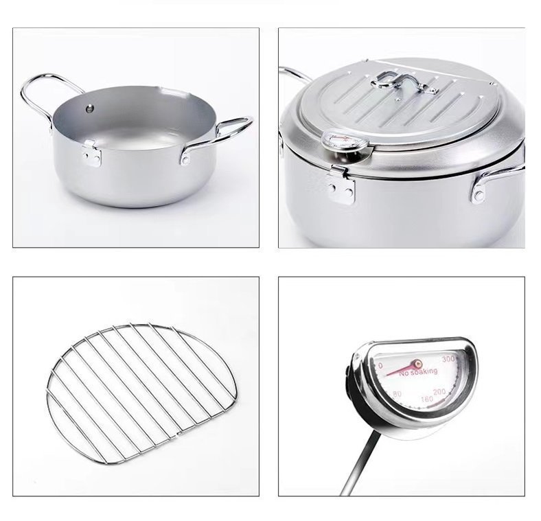 ★当ページをご覧いただきまして誠にありがとうございます。 必ず最後までお読みください 【揚げ鍋】 長持ちして丈夫で、断熱性能に優れています。揚げ物(フライドポテト、鶏肉、イカ、天ぷら、エビ、ピーナッツ、魚など)にぴったりです。 【正確な温度制御】 温度計付きの揚げ鍋は、油の温度をより正確にコントロールし、油の温度に応じて、料理をよりよく調理して最高の味を得て、より多くの美味しいものをもたらします。(温度計を水で洗わず、冷やしてティッシュで拭き取ってください) 【油抜き】 冷たい取っ手、鍋蓋と取り外し可能な油垂れ蓋、食べ物の中の余分な食用油を排出するために使用されます。鍋の油の位置線は油の量が適度で、余分な食用油を浪費しないように注意します。 【分流口のある深いフライパン】 くちばしの分流口のデザインは、揚げた後に食用油を注ぎやすく、倒れた時に油が残る心配がありません。