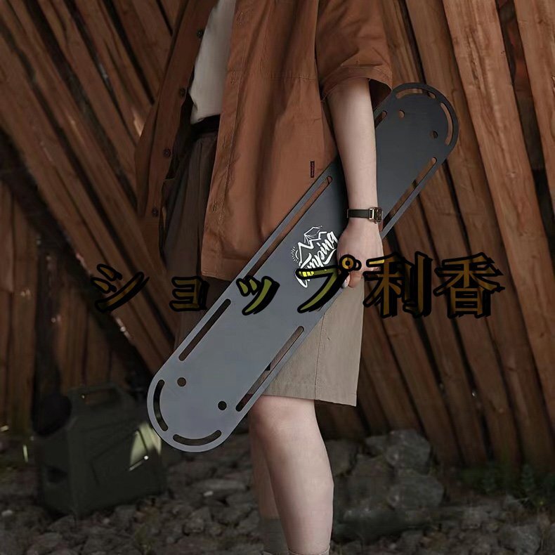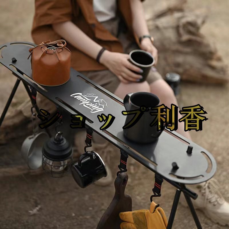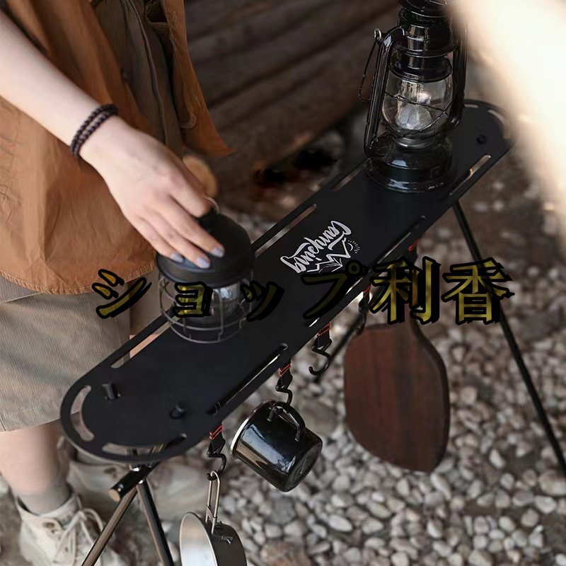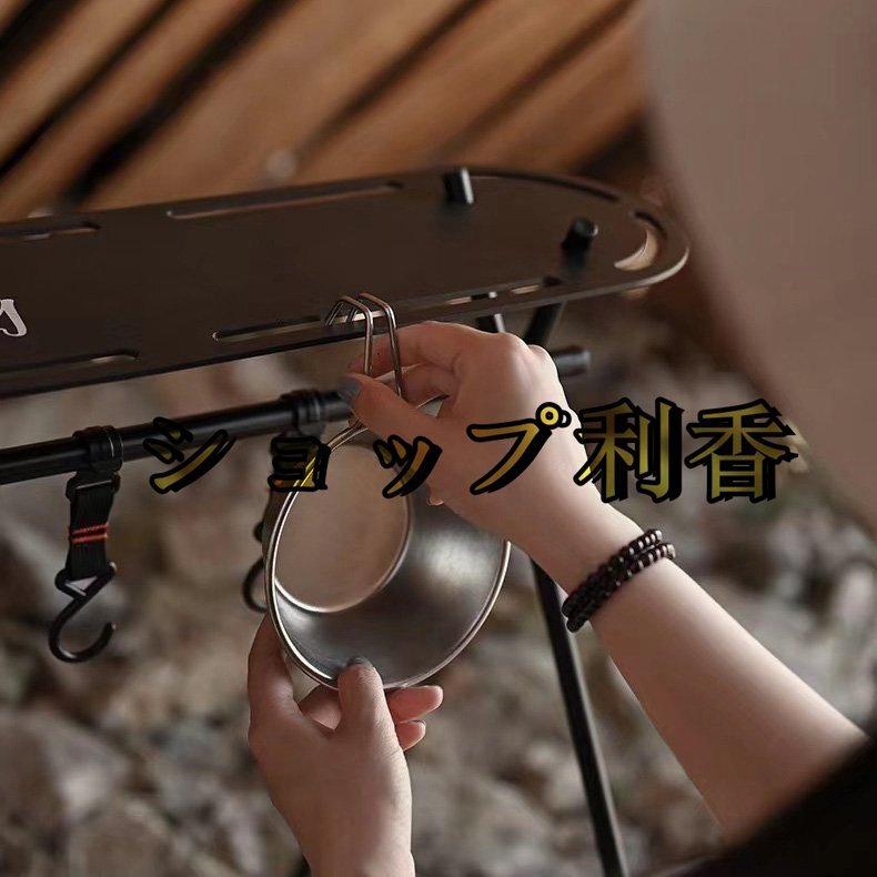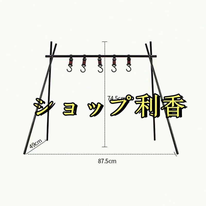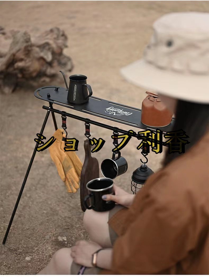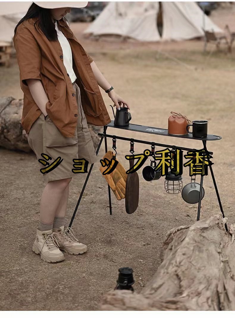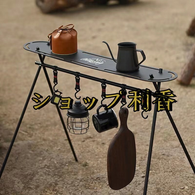 【ハンガーラック】 キャンプやレジャーなどで便利に使えるアウトドアハンガーラックです。 鉄製の鍋やフライパンなどの吊るし掛けたり, ランタンなど板の上に乗せたり しっかり支えます。