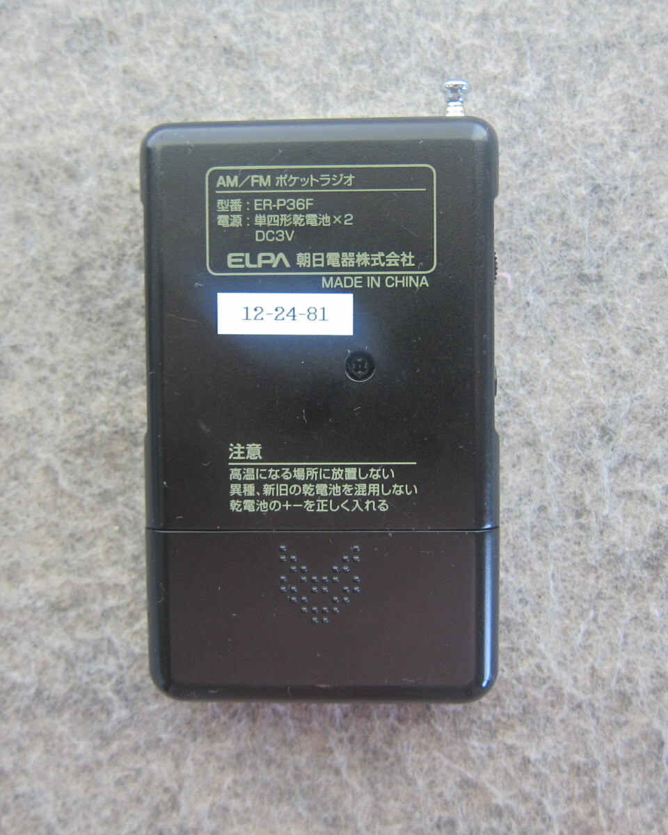ELPA 朝日電器 AM/FMポケットラジオ ER-36F ワイドFM対応 動作確認品 12-24-81です。