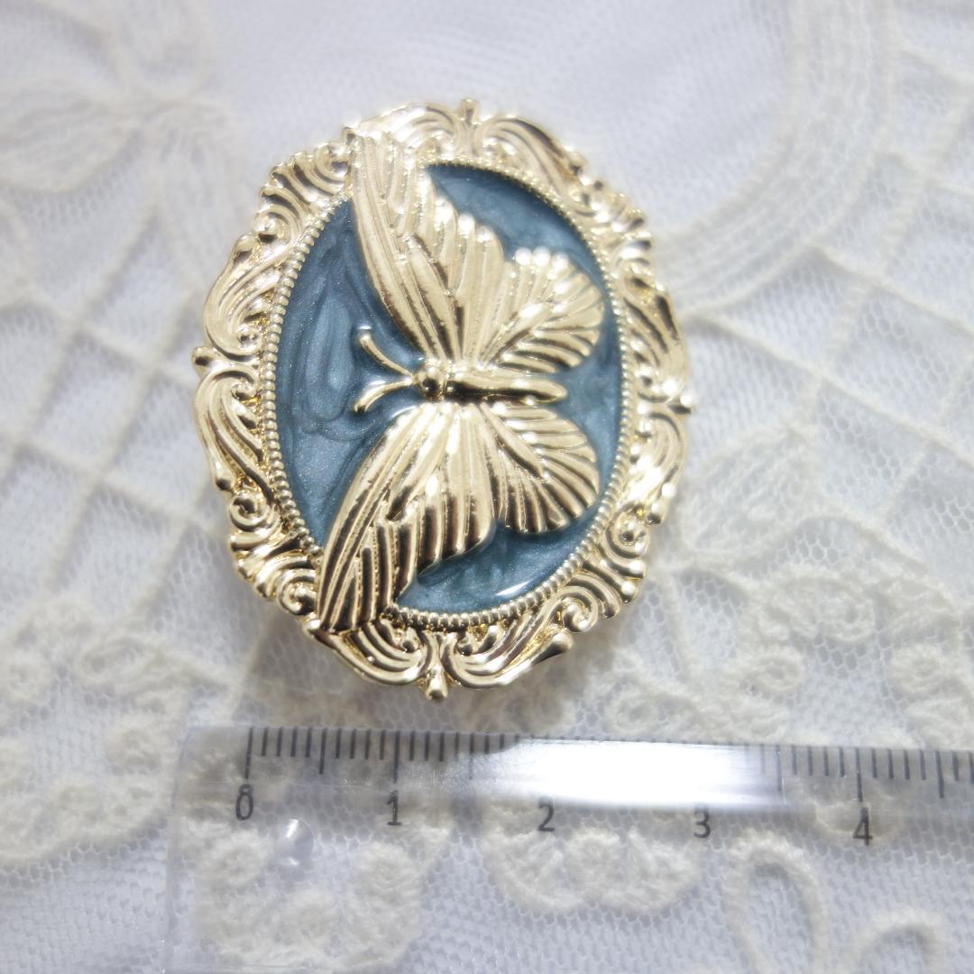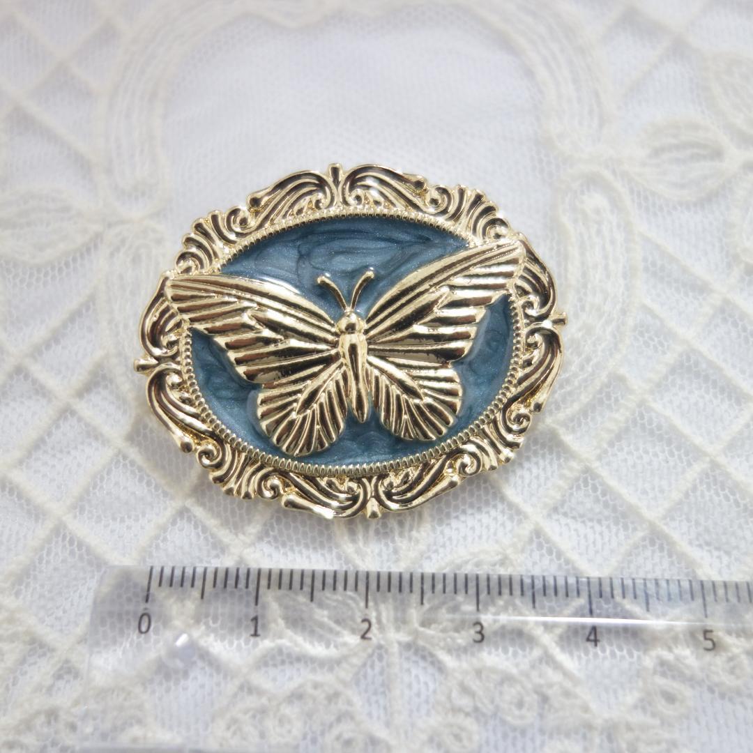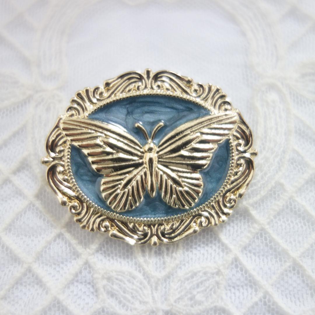 アンティーク調/ヴィクトリアン調 スカイブルー 蝶 雰囲気のある ブローチ
