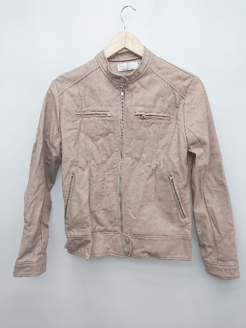 ◇ MAISON TOKYO フェイクレザー 長袖 ブルゾン ライダースジャケット サイズL ピンクベージュ系 レディース P