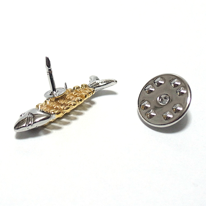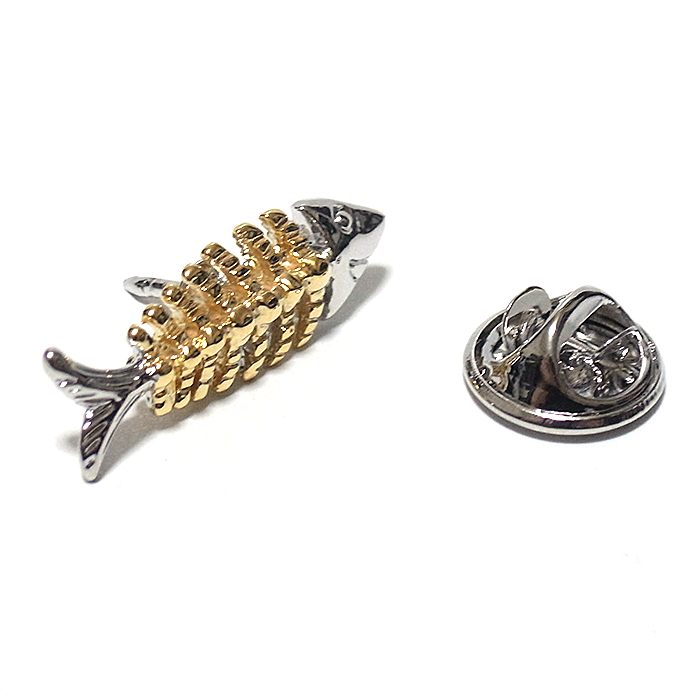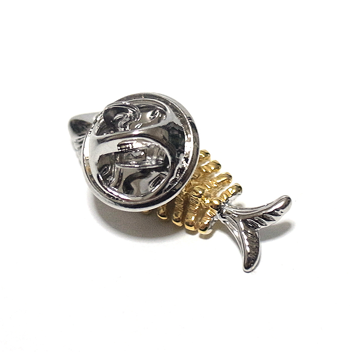【ラペルピン★ピンズ】フィッシュ・ボーン 魚の骨 シルバー×ゴールド pin-0784