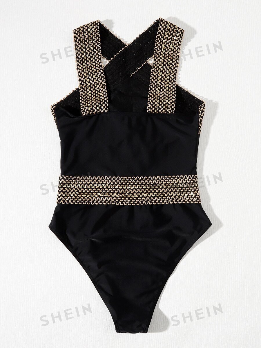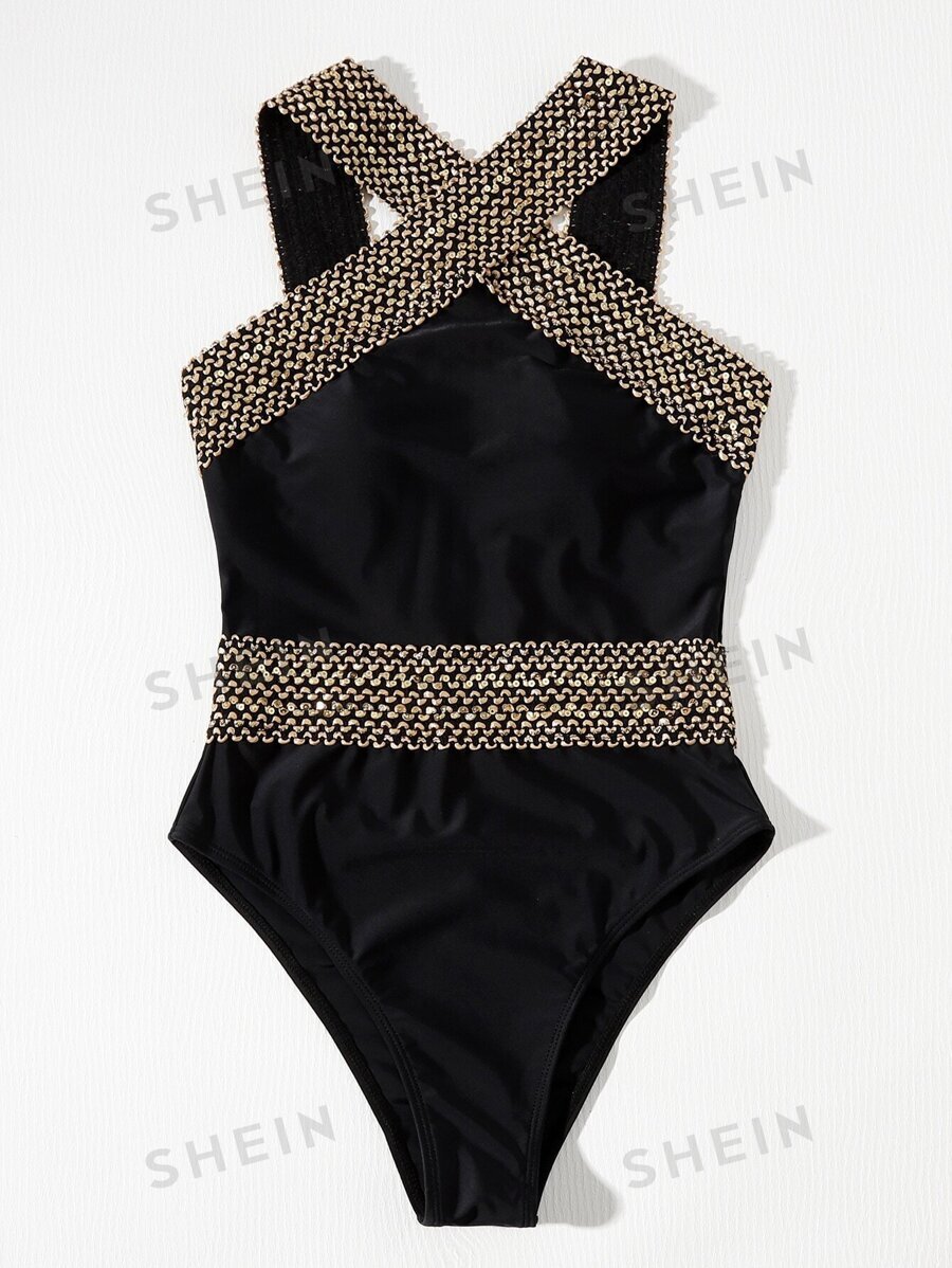 レディース 水着 ワンピース コントラストバインディング クリスクロス ワンピース水着