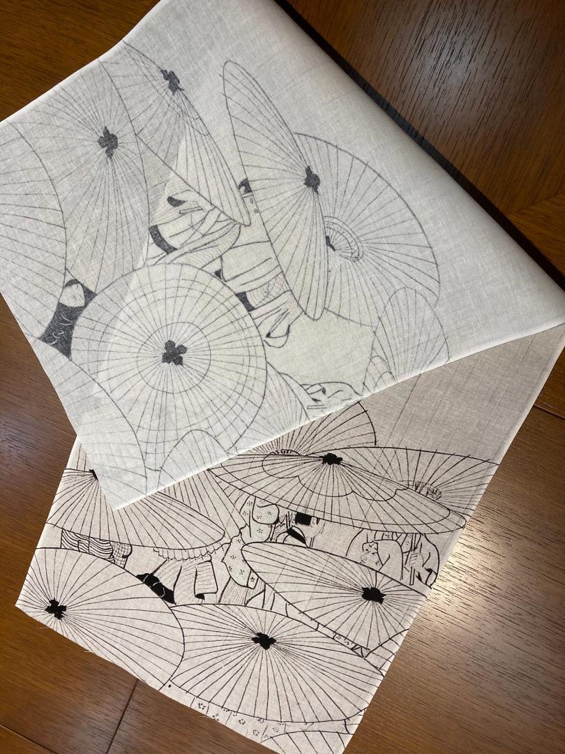 最高級の手ぬぐい生地の特岡に反応染料で捺染プリントしています。