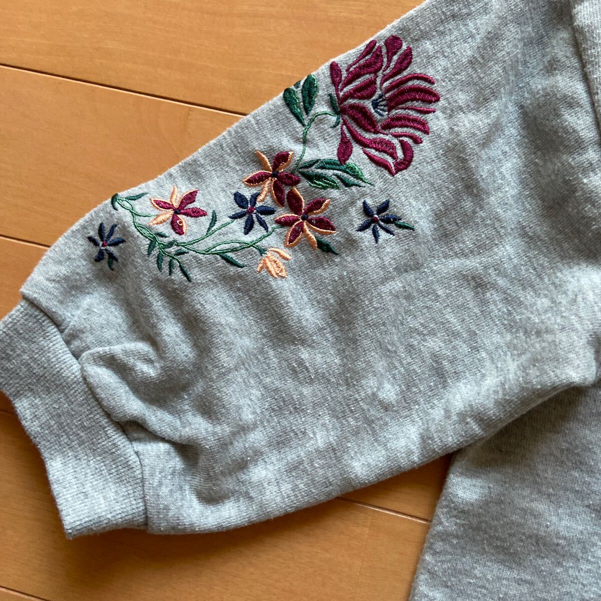 3can4on☆袖刺繍 6分袖 裏毛カットソー♪サイズ2☆used