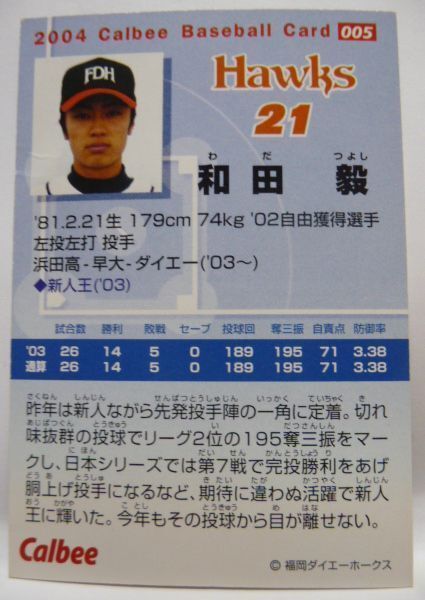 カルビープロ野球カード2004年#005【和田 毅(福岡ダイエー ホークス)】平成16年チップスおまけ食玩トレーディングカード【中古】送料込