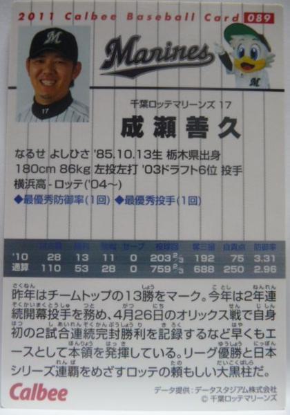 カルビープロ野球カード2011年#089【成瀬 善久(千葉ロッテ マリーンズ)】平成23年チップスおまけ食玩トレーディングカード【中古】送料込