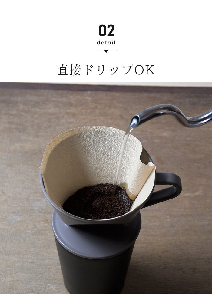 | ・真空断熱構造で適温をキープ ・直接ドリップOK ・大口で氷が入れやすい |
