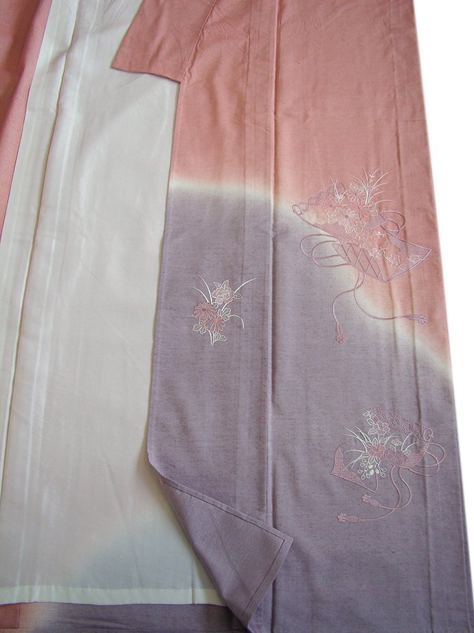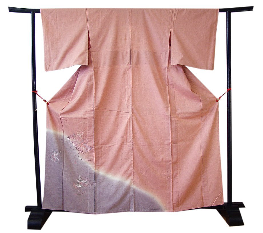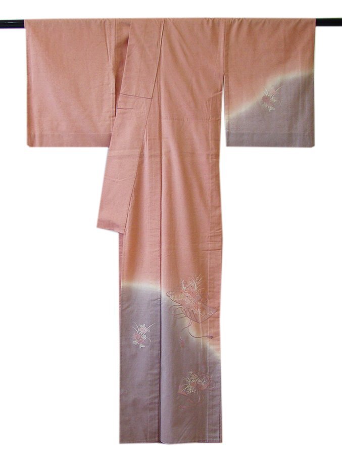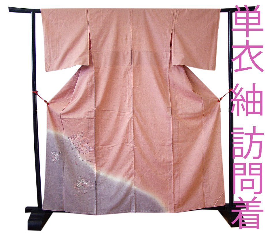 | 商品説明 | こちらのお品は「単衣」ですので5月、6月、9月にお召頂ければと思います。 着物には、大きく分けて「袷(あわせ)の着物」と「単衣(ひとえ)の着物」と「夏着物」があります。 反物(表地)を着物に仕立てるときに、裏地類をつけるものを袷の着物、 つけないものを単衣の着物と呼び、胴裏や八掛といった裏地がつかない一枚ものの着物です。 また裏地がないため、座る時などにヒップのラインが目立たないよう、 居敷当て(いしきあて)の生地をつけることもあります。 正絹の居敷当て2巾付いております。 とてもしなやかでさらりとして手触り良く着心地良い涼やかな風合いの紬地の訪問着、 紅梅色地に裾にかけて薄い鳩羽色ぼかし染に花草柄の刺繍入りが 酒落感高い着物姿を演出しております。 |