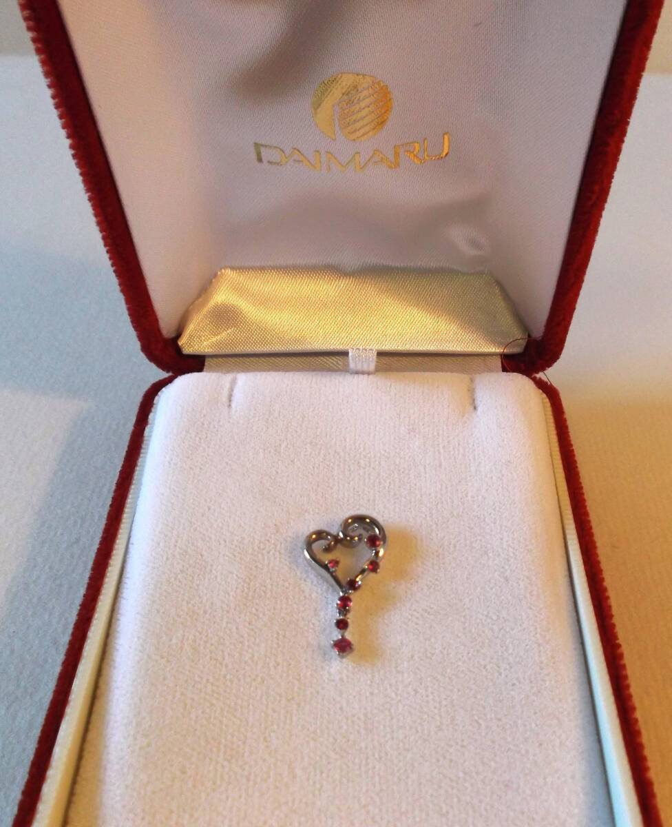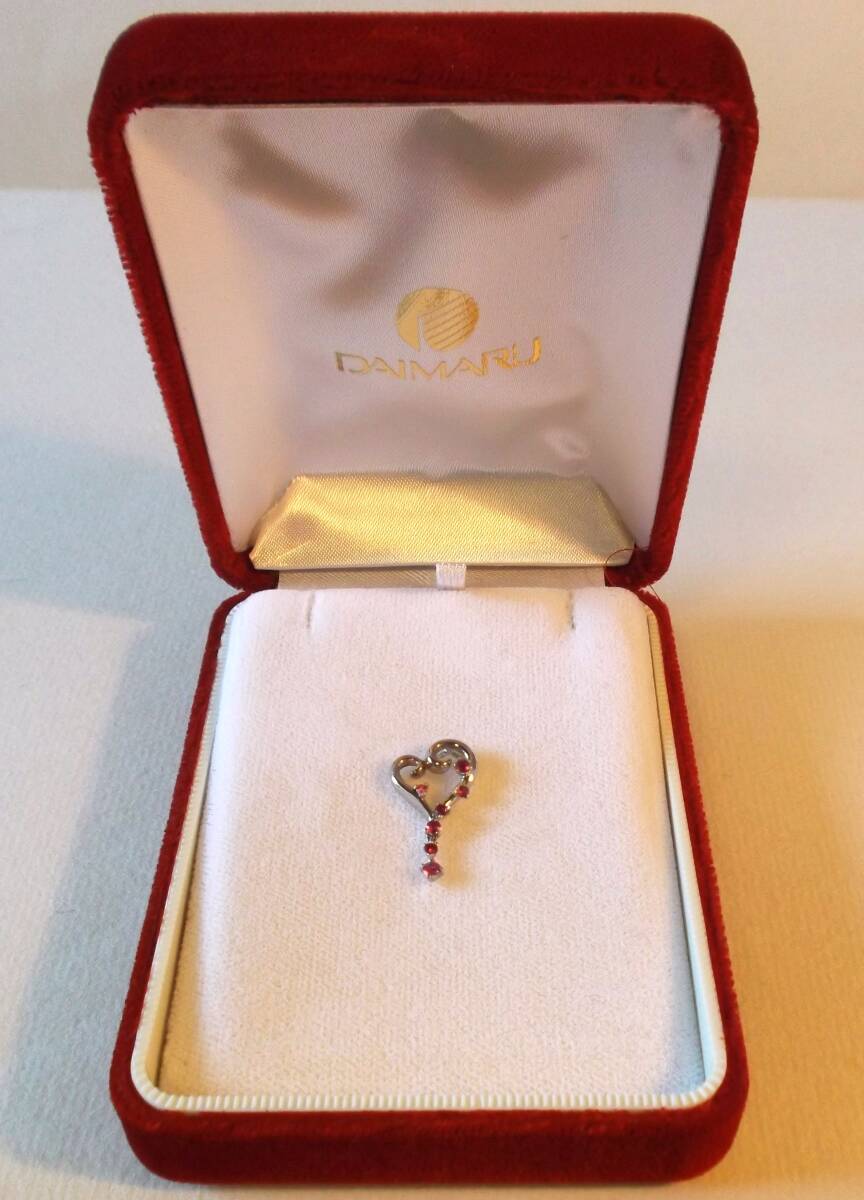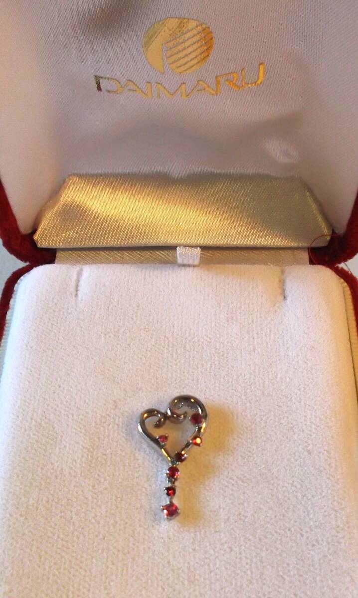 ★ペンダントトップ★ホワイトゴールド★プラチナ仕上げ★ ★ルビー★ラウンド★7P★ ★ジュエリークオリティー★ ★サイズ★約22mm×約12mm★総重量★約2.7g★ ★オリジナル★ブランド★デザイン★ハート★スイング★ ★ハート型トップの下3Pのルビーが、左右にスイング★ ★ITALY★イタリー・ベネチアン・チェーン★刻印★ ★K18WG★ホワイトゴールド★ ★長さ★約40cm★ ★ゴールドグラム相場★1gあたり★@¥20700以上★ ★大丸★DAIMARU★ベルベット★ジュエリーケース★ |