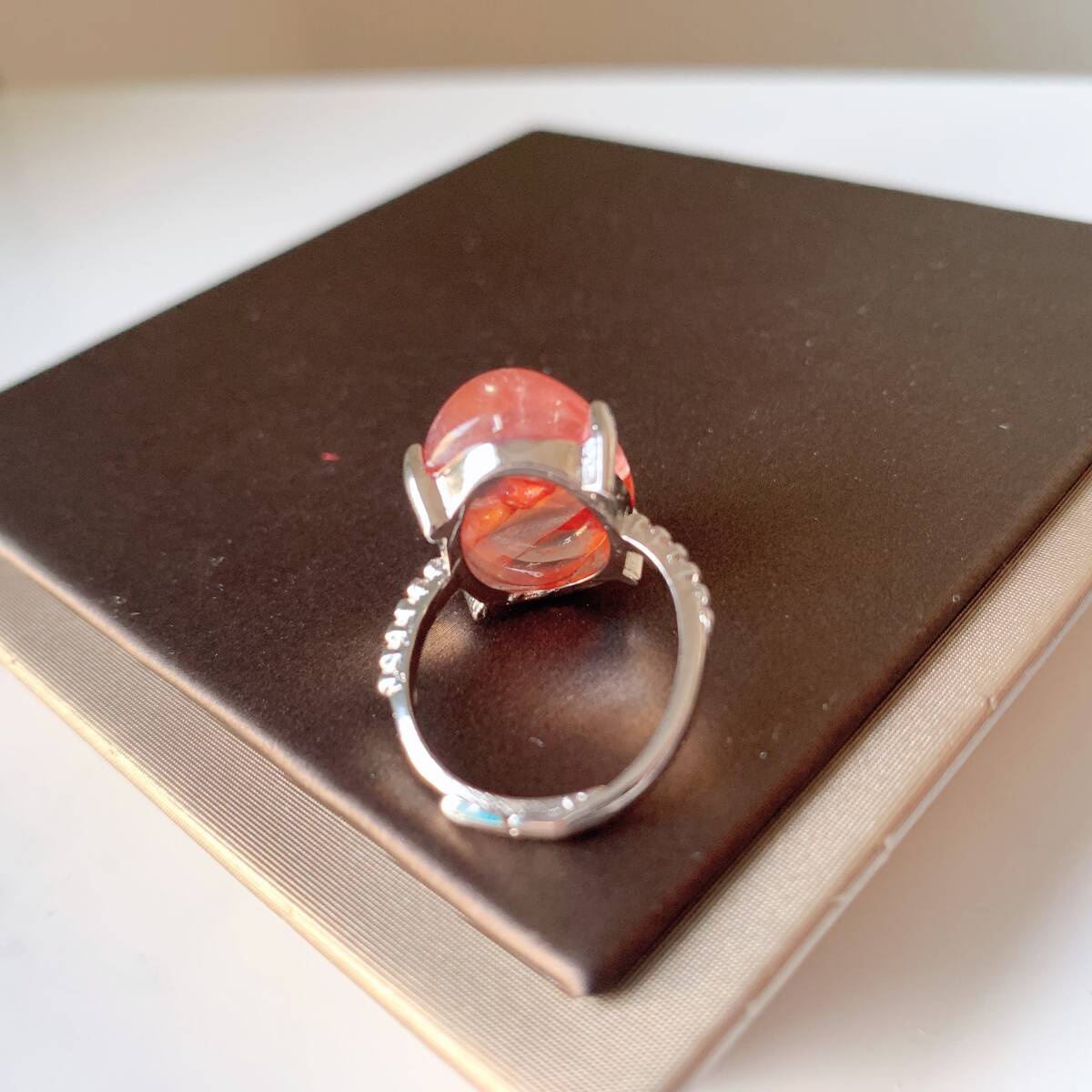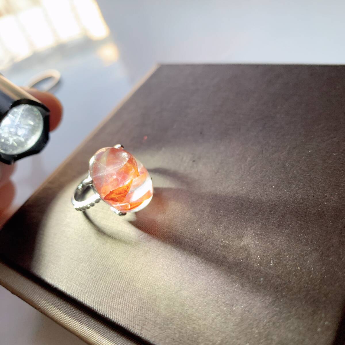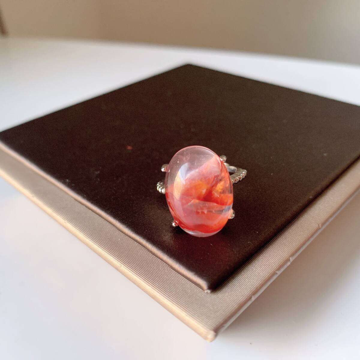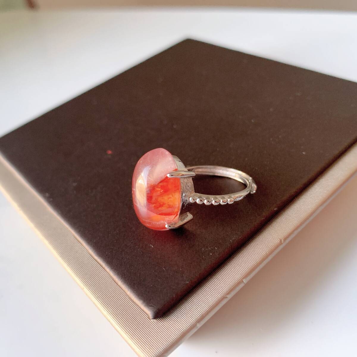 訳あり◇タンジェリン・クォーツ◇指輪◇リング◇フリーサイズ◇天然石◇パワーストーン◇巾着袋付き◇プレゼントにも029R41210