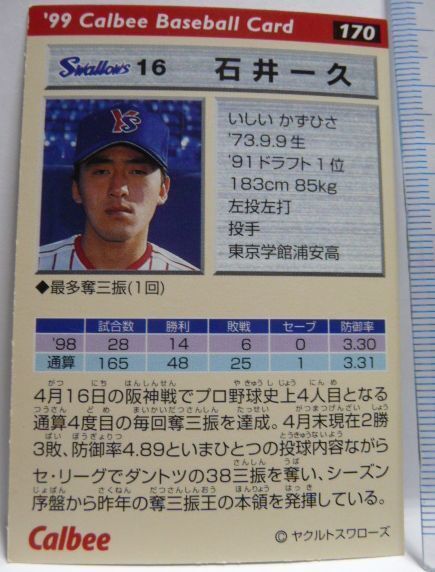 カルビープロ野球カード99年#170【石井 一久(ヤクルト スワローズ)】平成11年1999年チップスおまけ食玩トレーディングカード【中古】送料込