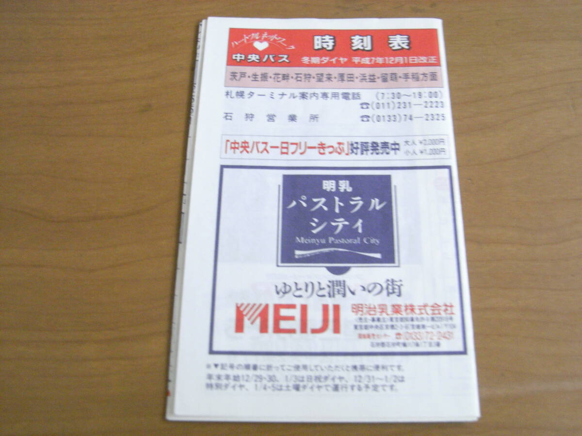 中央バス時刻表 冬期ダイヤ 平成7年12月1日改正 茨戸・生振・花畔・石狩・望来・厚田・浜益・留萌・手稲方面