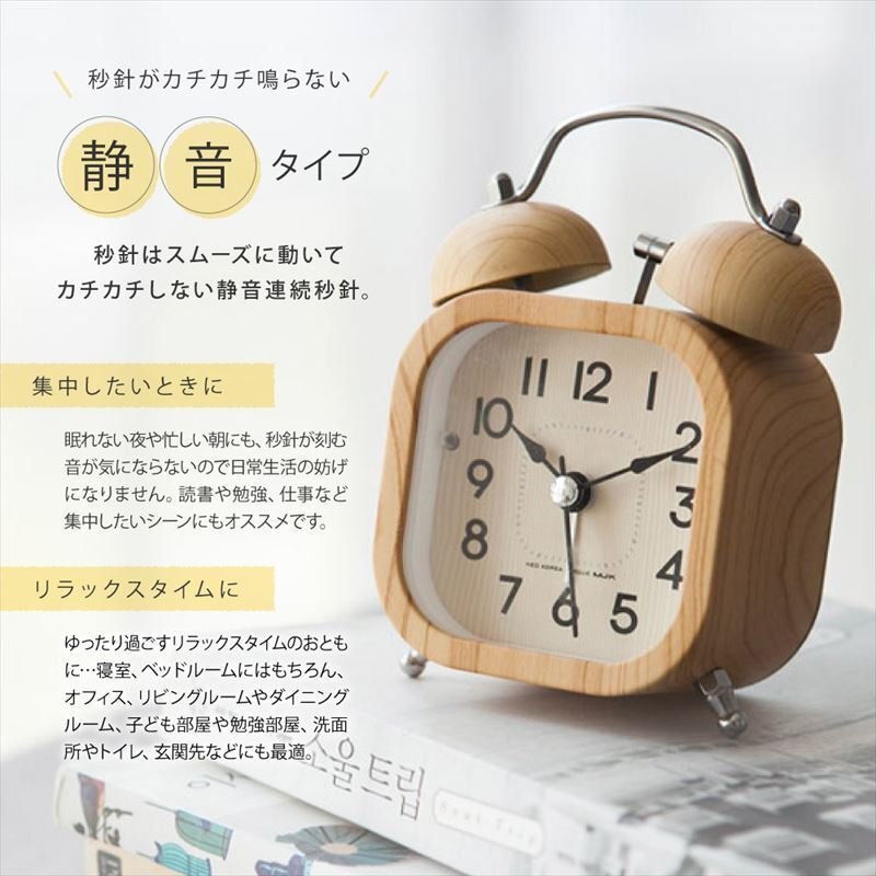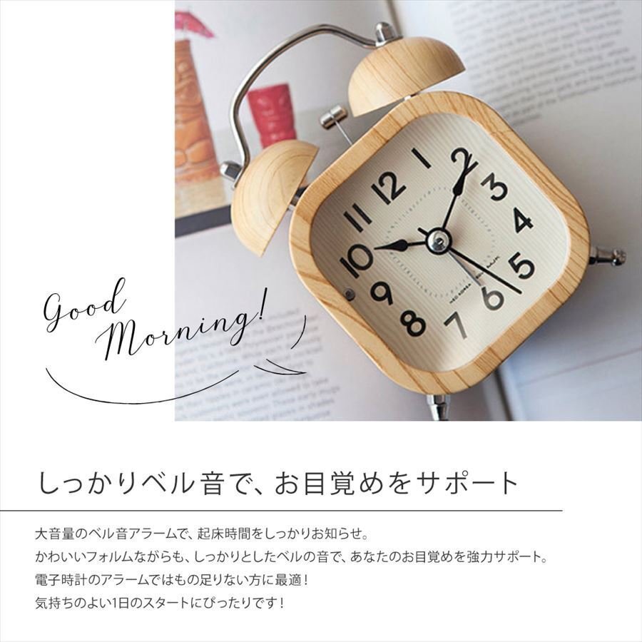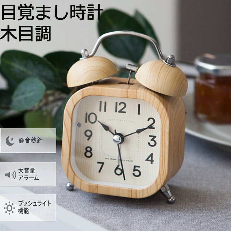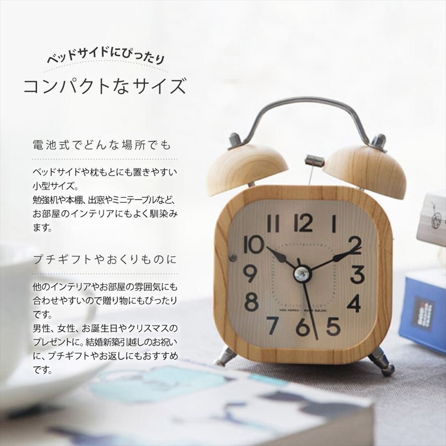 目覚まし時計 アナログ時計 木目調 ベル音 リビング 卓上 静音 シンプル