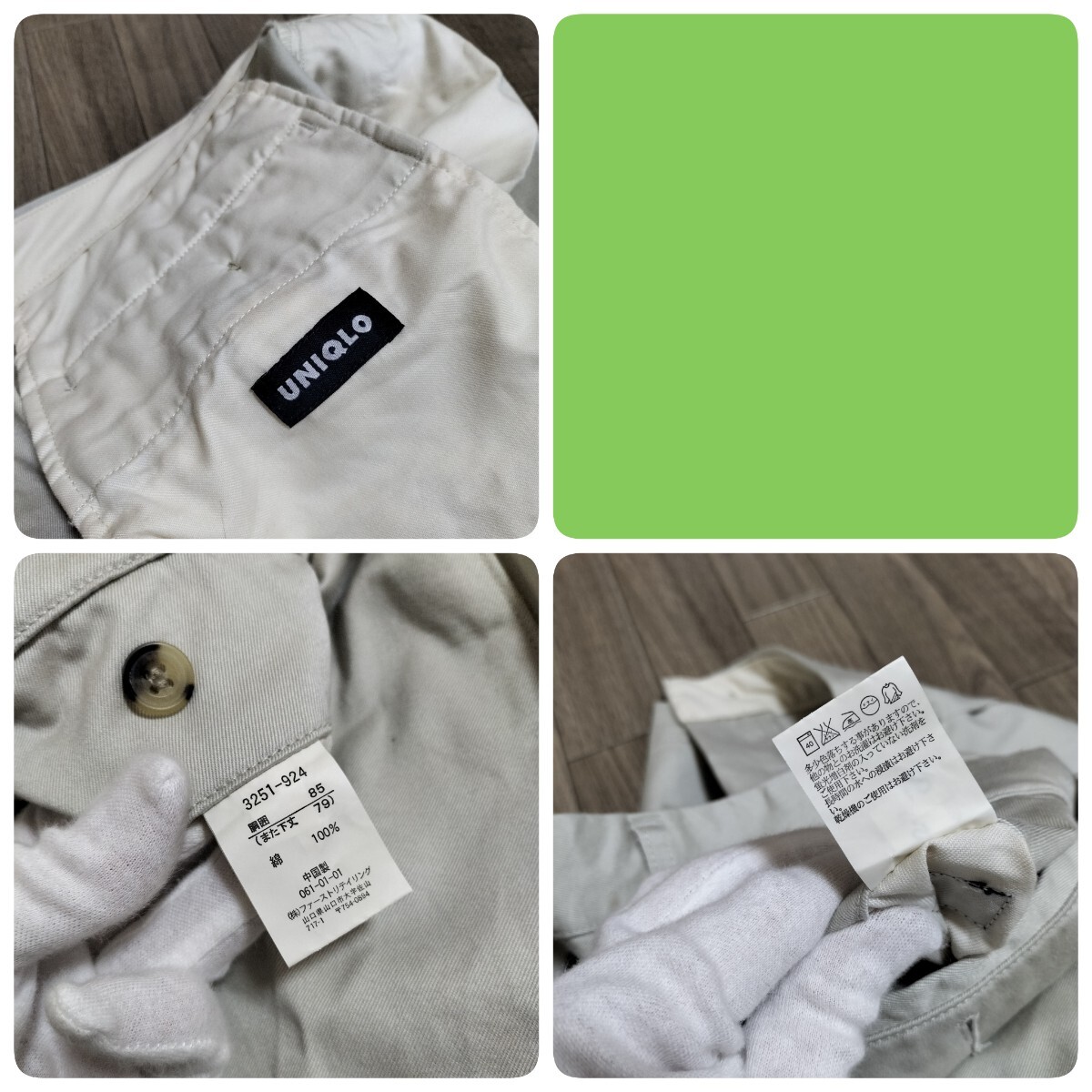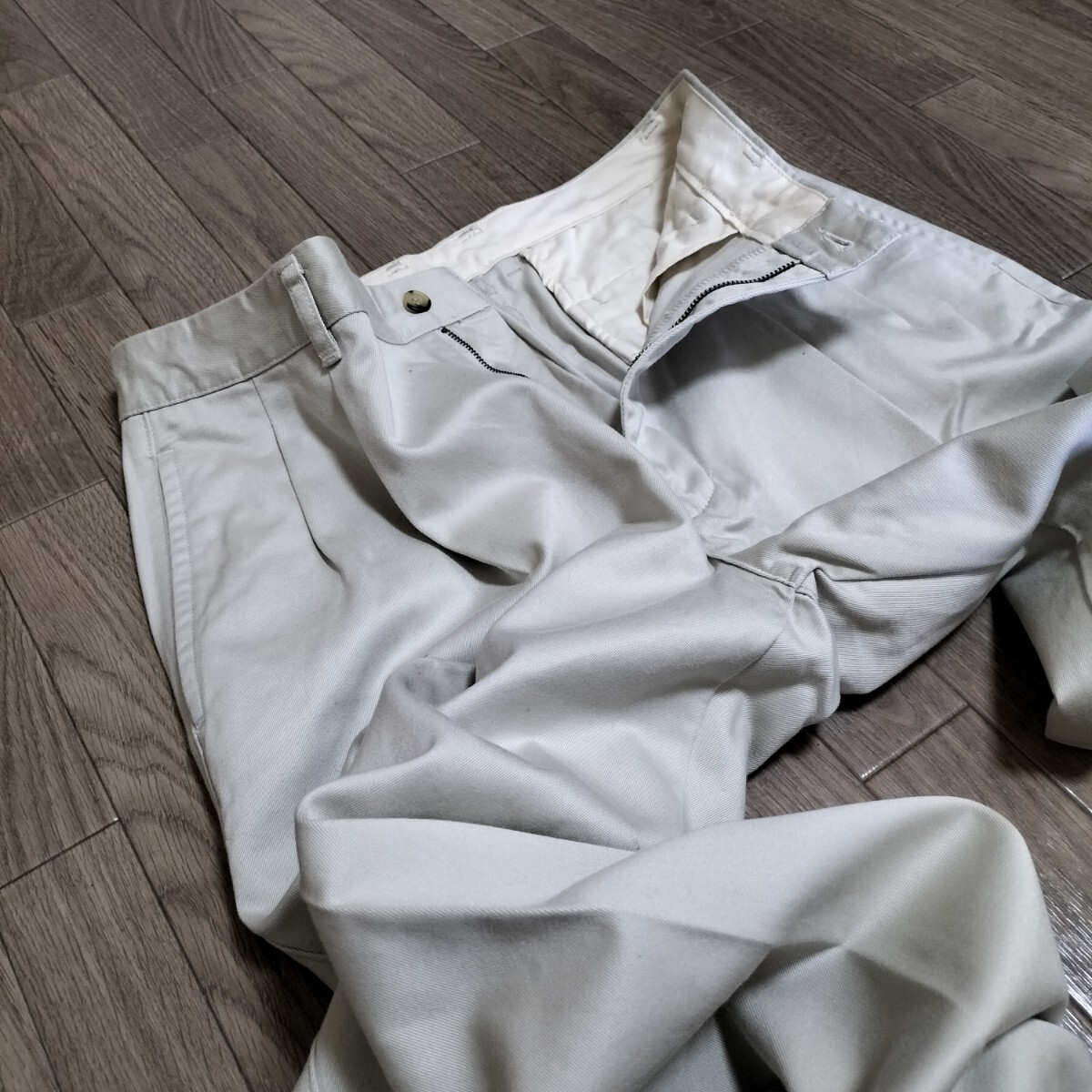 ★90s OLD UNIQLO スラックス チノパン コットンパンツ メンズ W34相当 無地 オフホワイト きなり ビンテージ オールド ユニクロ 希少 ブランド古着 USED