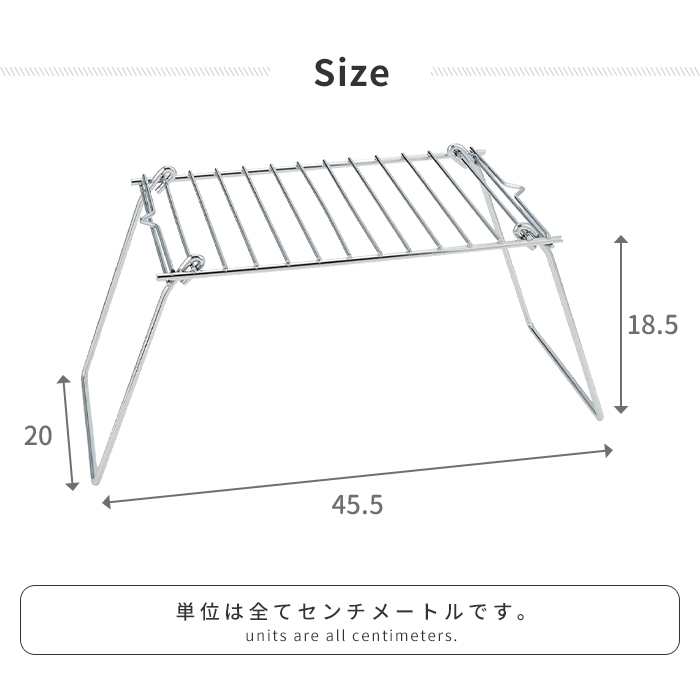 | 折りたたみ可能な脚の付いたグリル網です。 用途によって様々な使い方ができます。 |