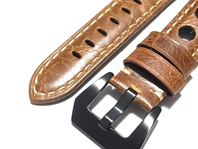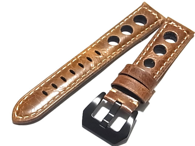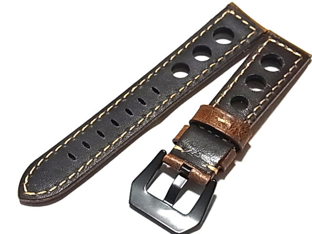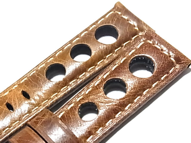 スリーホール レーシング ヴィンテージブラウン 高級ストラップ 20mm 23HOLE15 (タグホイヤーなどにも)