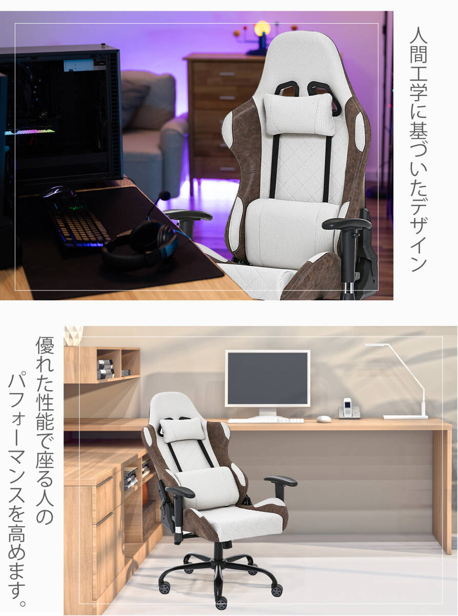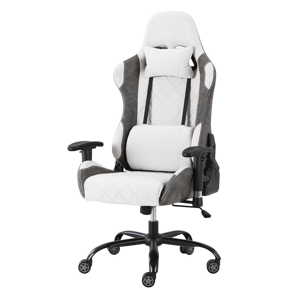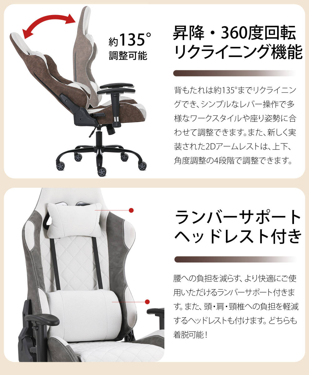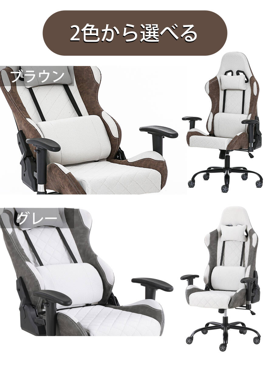 送料無料 【グレー】 ゲーミングチェア 人間工学椅子 2D アームレスト付き コンピュータチェア デスクチェア