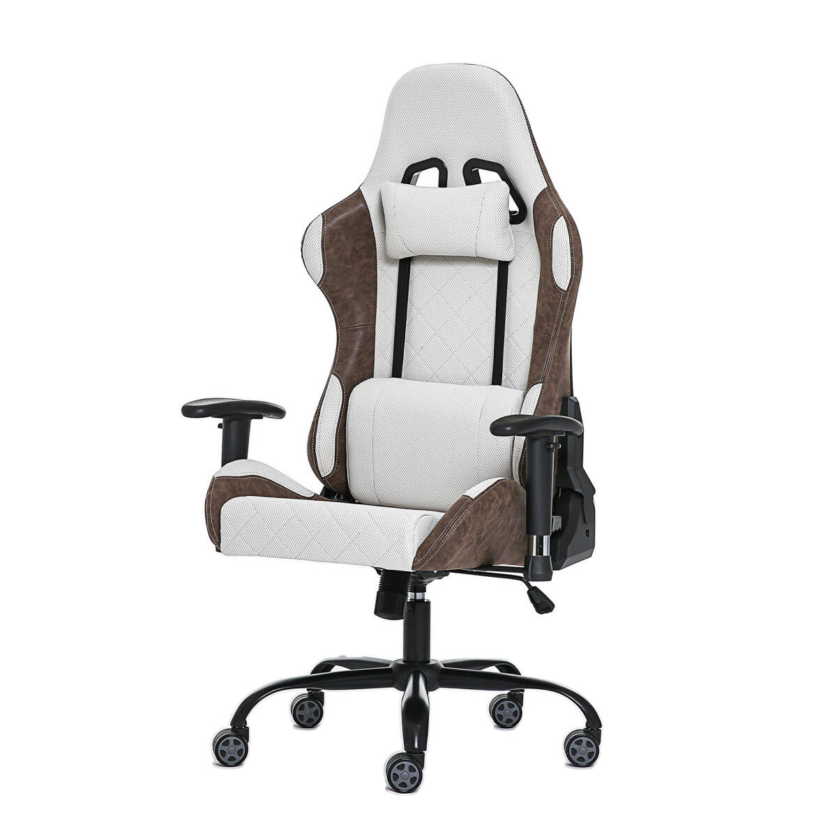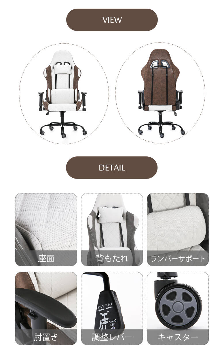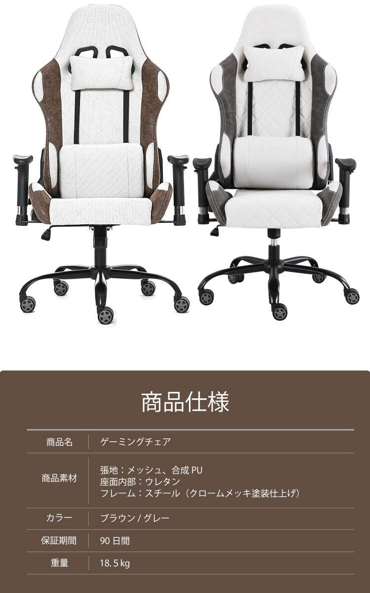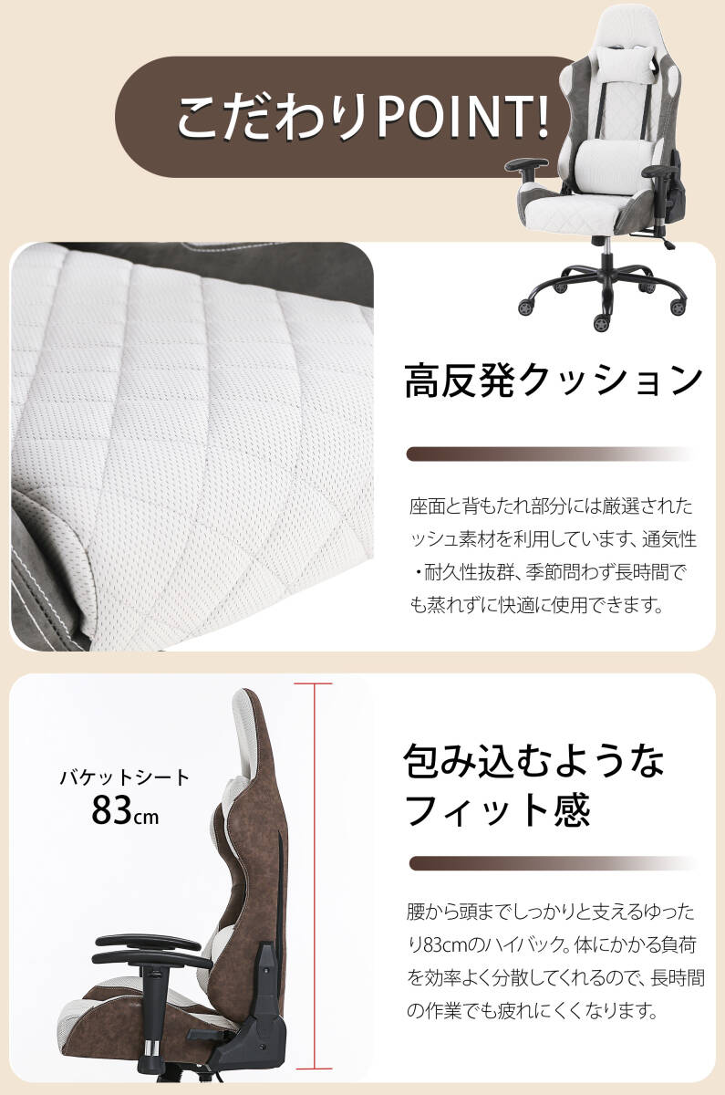 送料無料 【グレー】 ゲーミングチェア 人間工学椅子 2D アームレスト付き コンピュータチェア デスクチェア