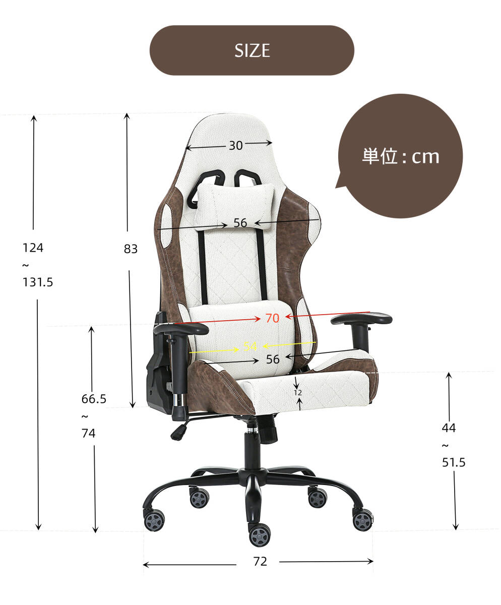・床から背もたれ上部までの高さ:約124〜131.5cm