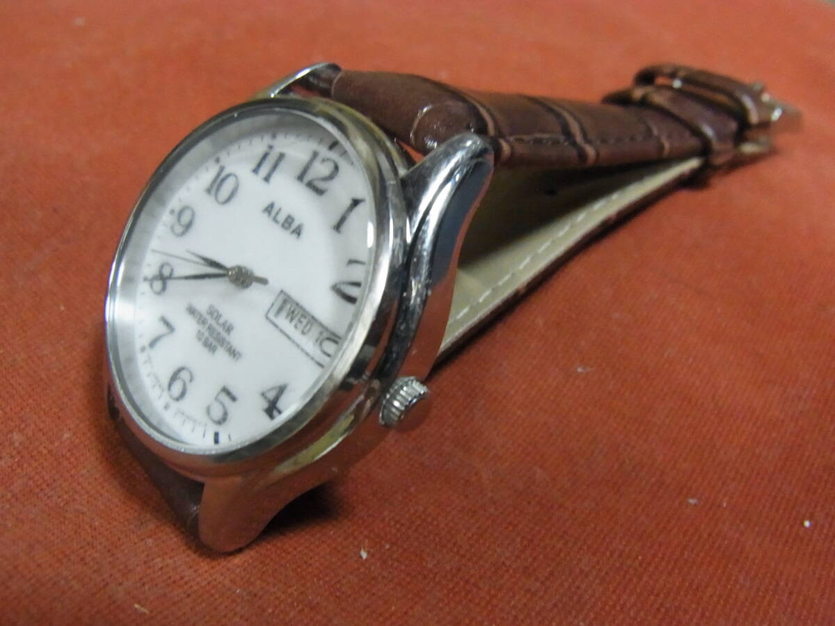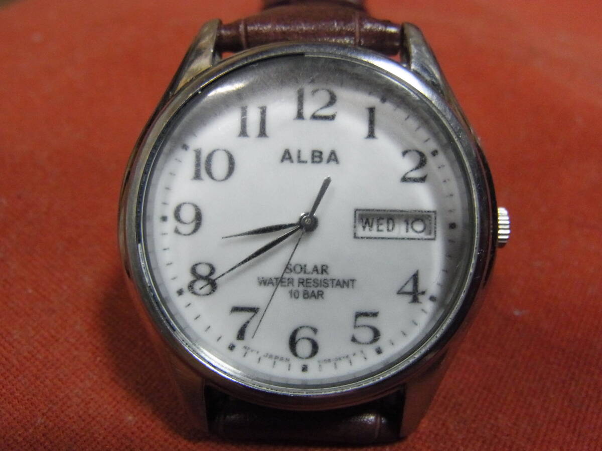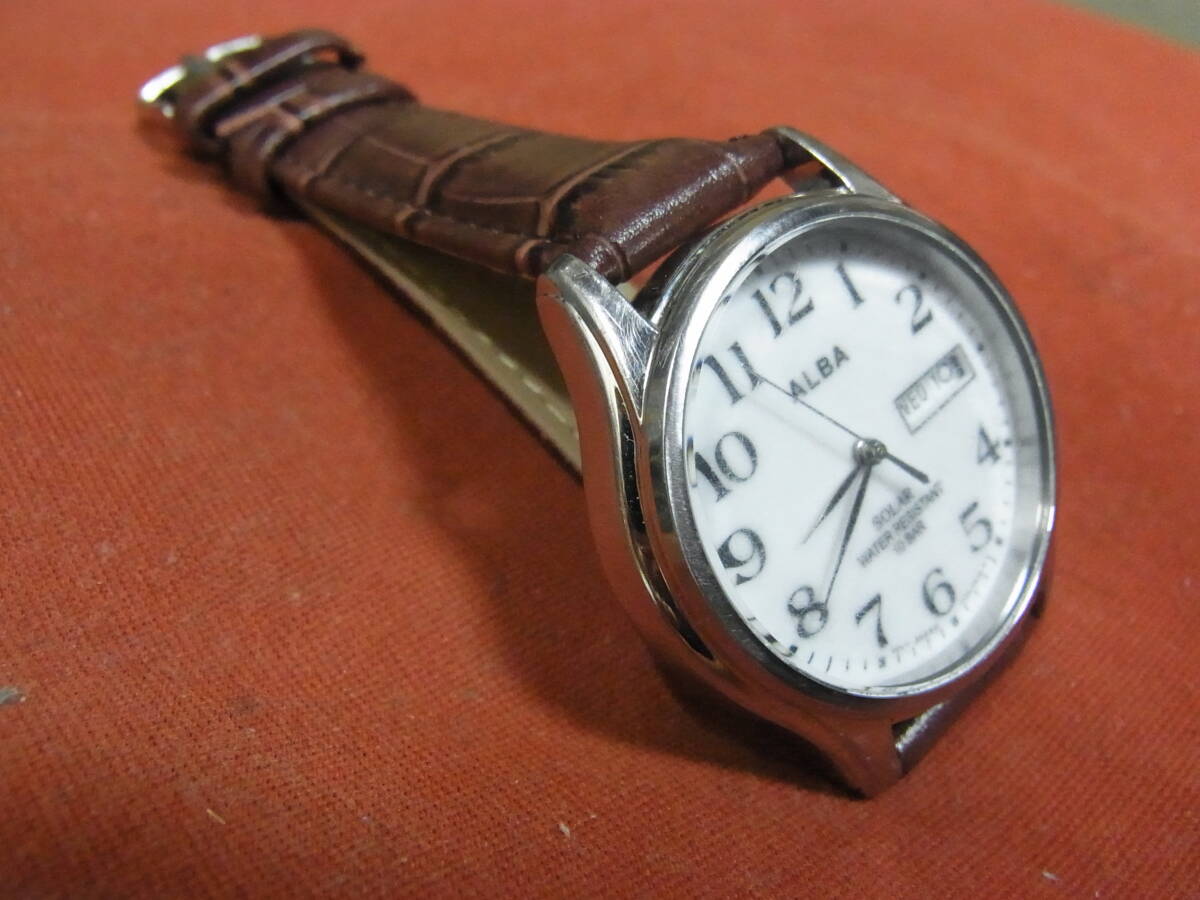 | SOLAR稼働品★SEIKOセイコー ALBA ソーラー ・デイデイト・V158-0AX0・10気圧防水・新ベルト(茶)★ | |||||||||