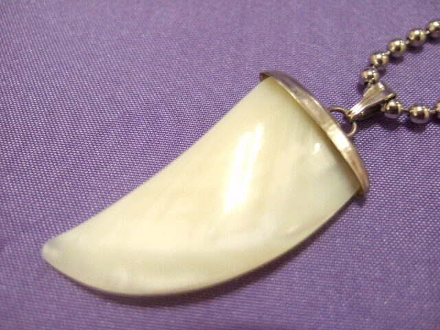 商品名 | 横浜最新 ホワイトシェル♪魅惑の牙ペンダント チェーン50cm メンズレディース 守護魔除け |