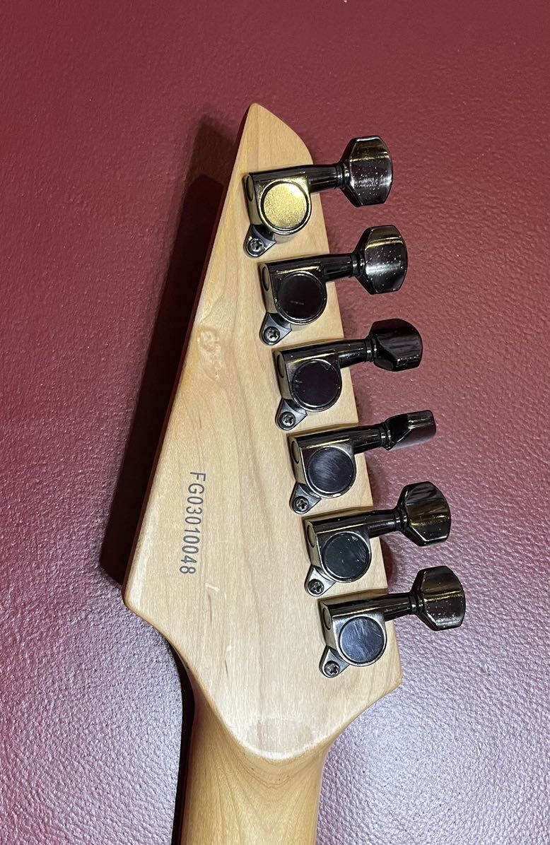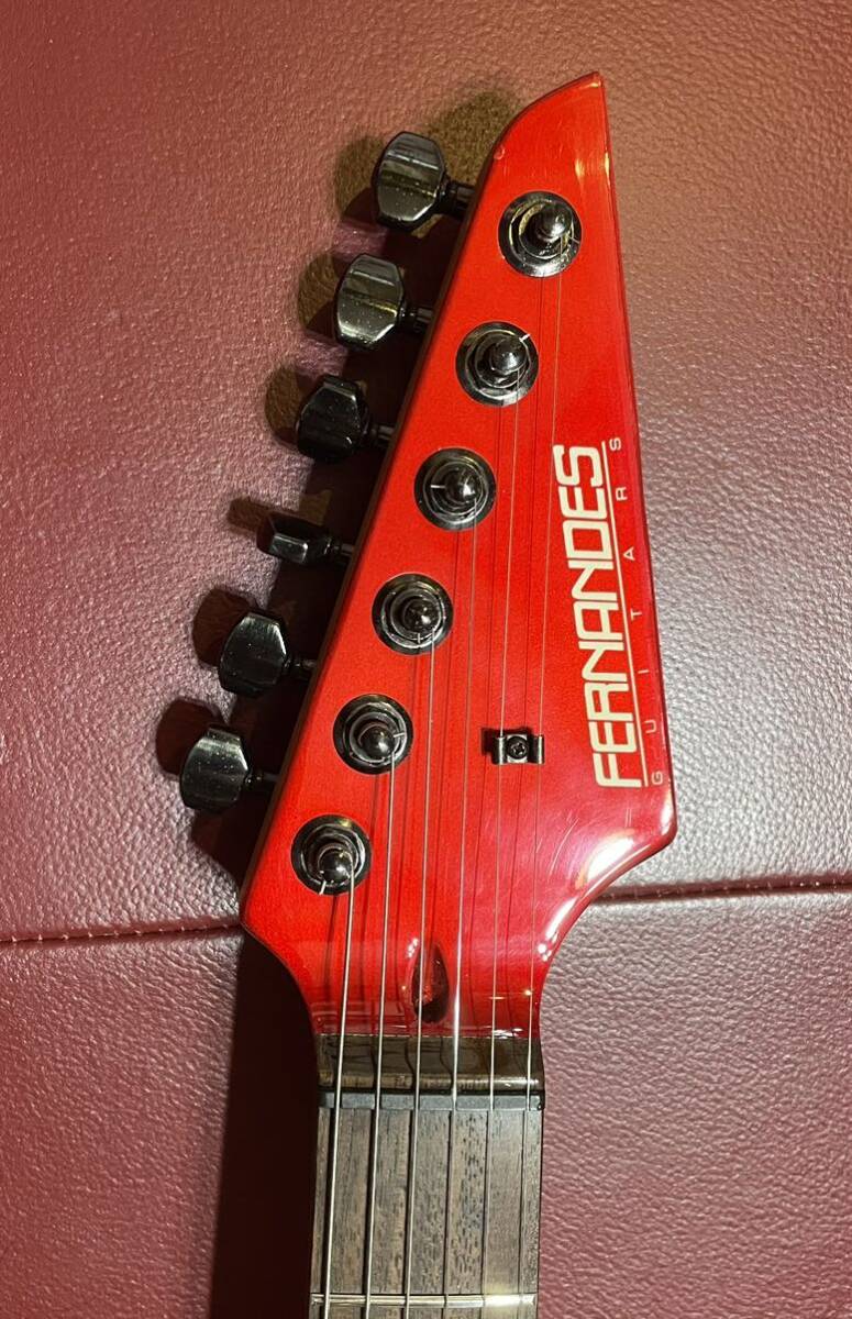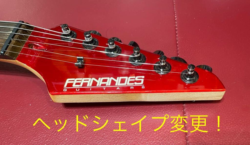 フェルナンデスのFRシリーズですが、詳しくは分かりません。綺麗なメタリックレッドです♪ ヘッドシェイプを変更していますので、FRには見えませんので、特注モデルみたいです!