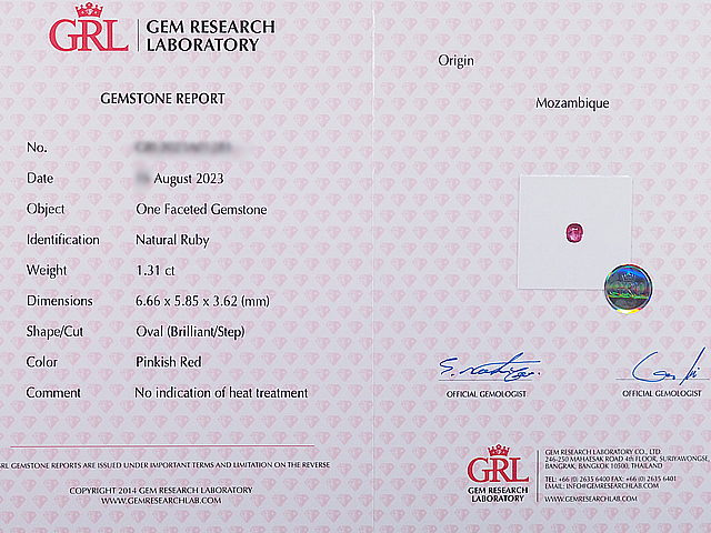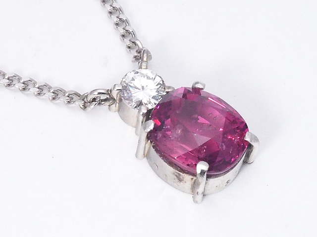 詳細:ノーブランド ノーヒート 非加熱 ルビー/1.31ct ダイヤ/0.12ct Pt900/Pt850 ネックレス 鑑別書付き 仕上済