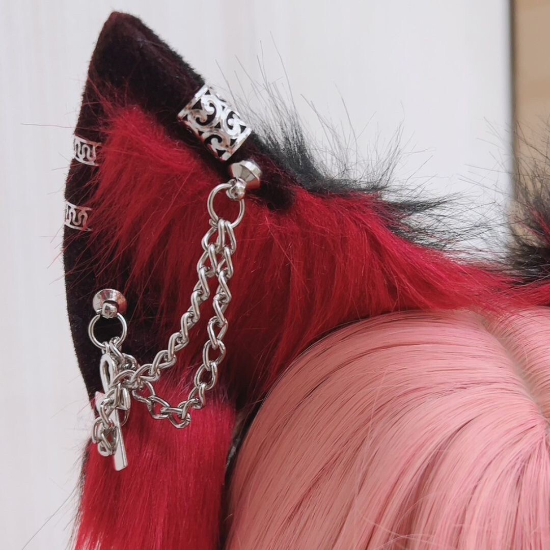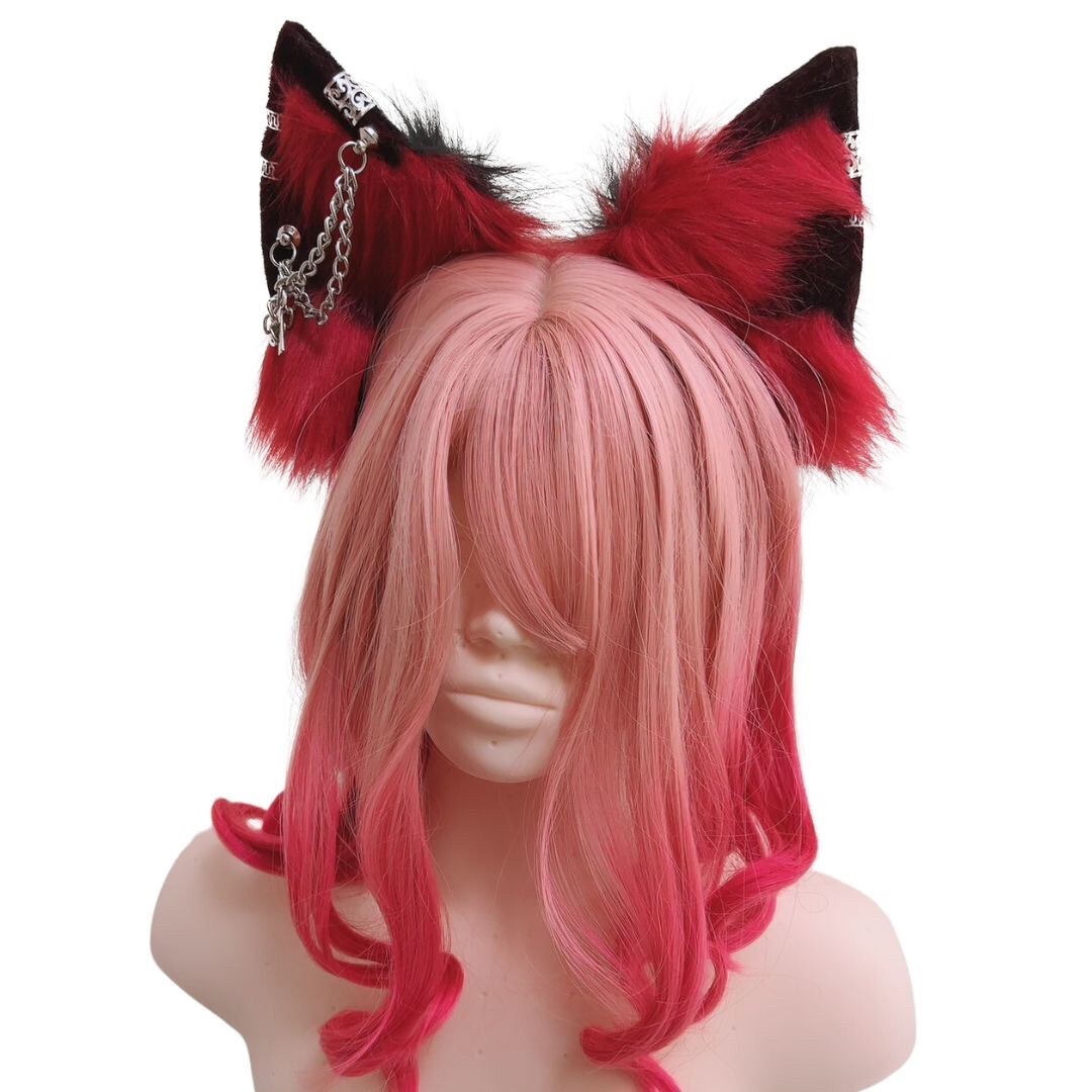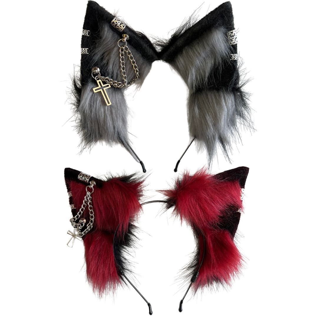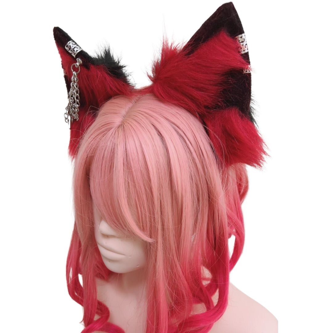 【レッド】カチューシャ 狼 ウルフ 耳 レッドorブラック 2種類 アクセサリー付き コスプレ ヘアアクセサリー デイリー 韓国ファッション