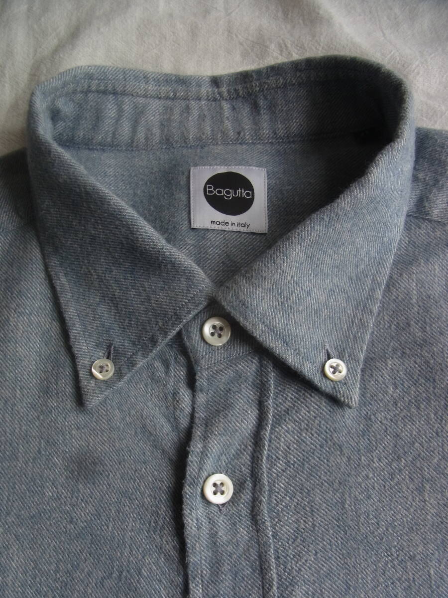Bagutta バグッタ リネン×コットン×ウール×カシミヤ ビエラ ボタンダウンシャツ サイズ 43/17