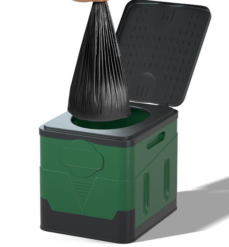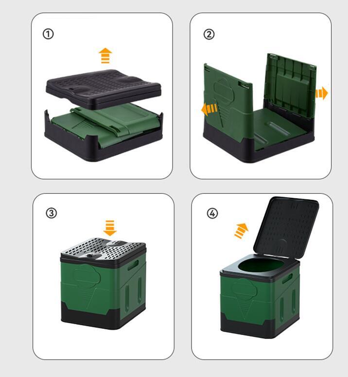 簡易トイレ処理袋付折りたたみ式スツールポータブルトイレ 携帯非常用災害用便器キャンプ 防災グッズ ハイキング 旅行 耐荷重160kgグリーン