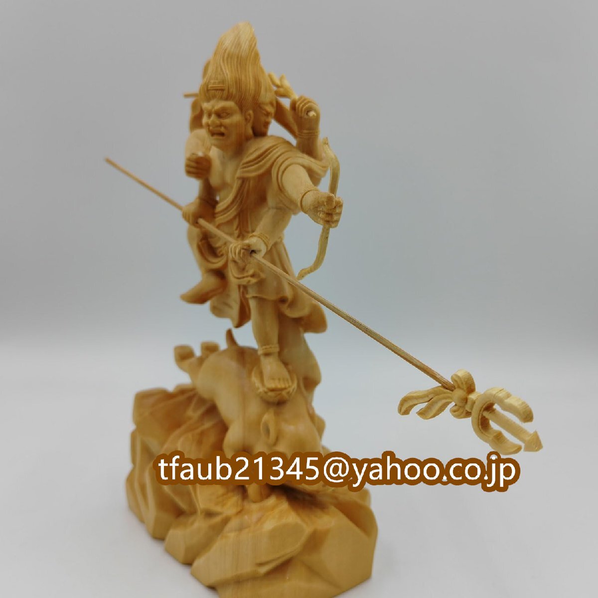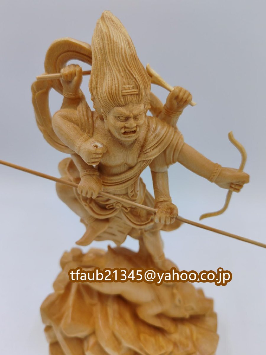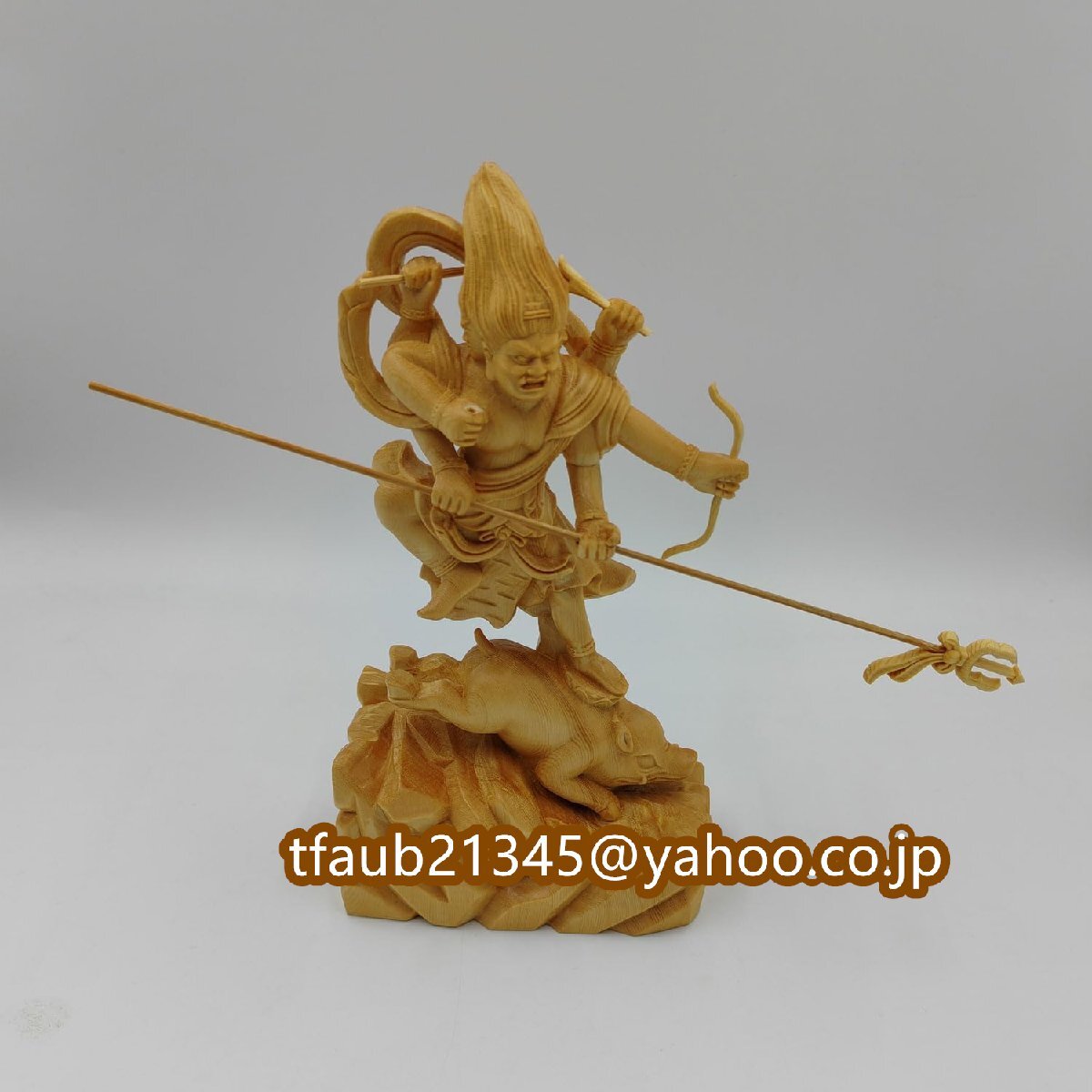 【ケーリーフショップ】摩利支天 仏像 桧木製高級木彫り 高さ21cm 守護神 仏間 仏壇 木彫り仏像