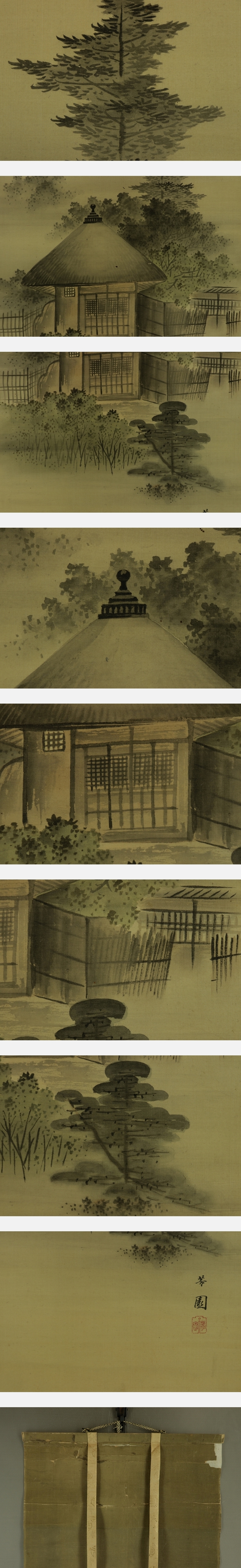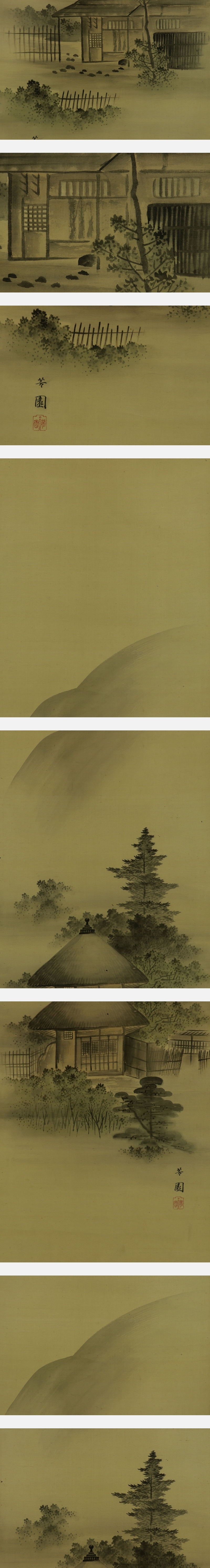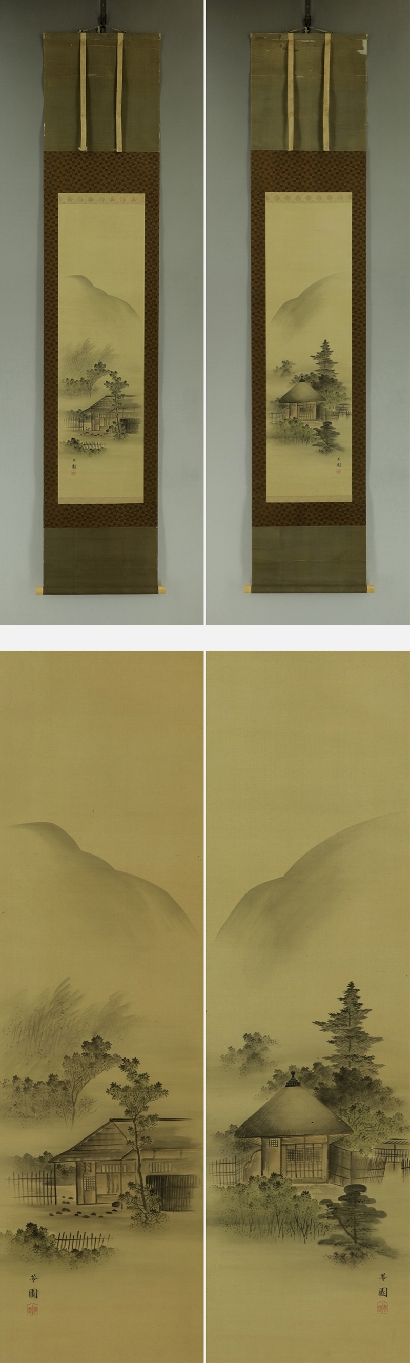 | №2310017【模写】西山芳園【双幅・淡色山水図】◆絹本◆合箱◆掛軸 | |