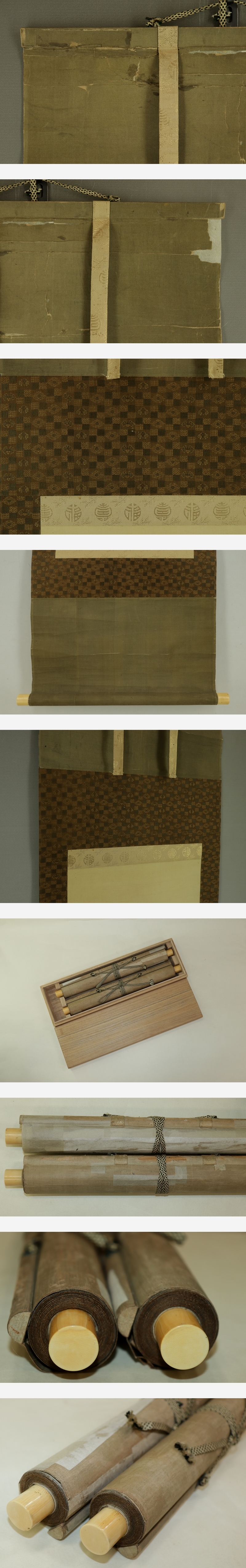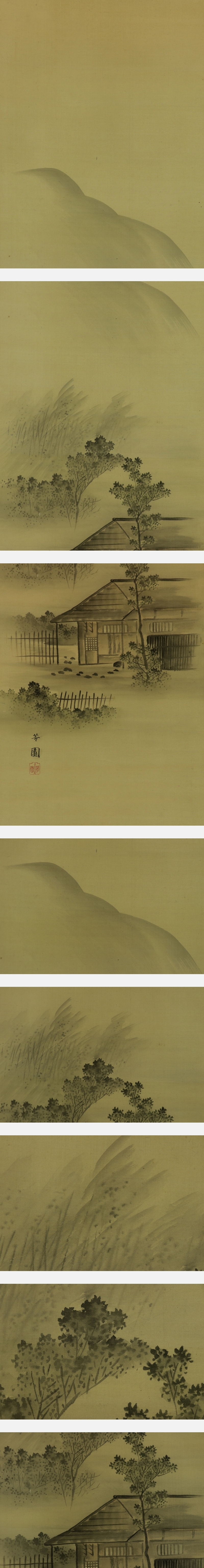 西山芳園 にしやま-ほうえん(1804-1867) 江戸時代後期の画家。大坂の人。松村景文に四条風の画法を学ぶ。 人物・花木・鳥獣の絵を得意とし,京坂地方で名が知られた。64歳。名は成章。字は士達。 本紙は、染み、汚れ、折れ、皺、ヤケがあります。 表装は、染み、汚れ、強い折れ、皺、虫食い、破れ、ほつれ、生地剥れ、修理痕、 くすみ、ヤケ、軸先に汚れがあります。 【サイズ】 作品 横約27cm×縦約93.5cm 表装 横約36.5cm×縦約177cm |