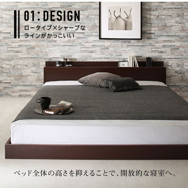 組立設置付き 棚・コンセント付きフロアベッド Elthman エルスマン ベッドフレームのみ セミダブル【フレームカラー:ダークブラウン】です。