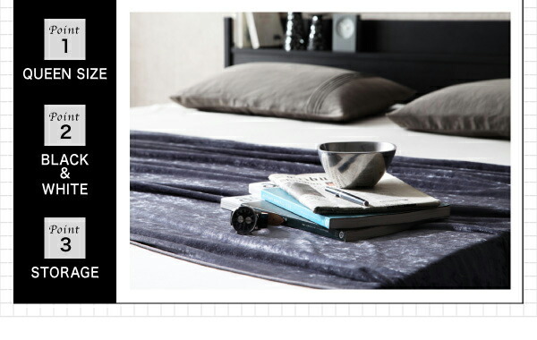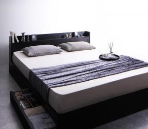 棚・コンセント付収納ベッド プレミアムポケットコイルマットレス付き クイーン(Q×1) 組立設置付