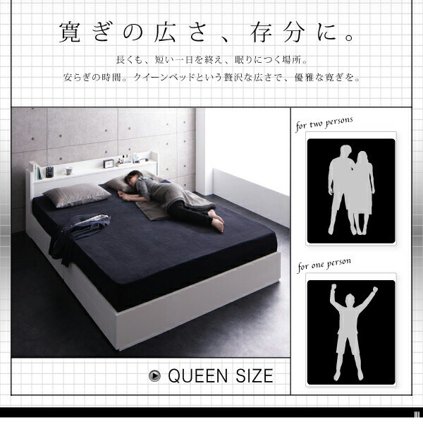 組立設置付き 棚・コンセント付収納ベッド Rizeros リゼロス プレミアムポケットコイルマットレス付き クイーン(Q×1)【フレームカラー:ホワイト】【マットレスカラー:ホワイト】です。