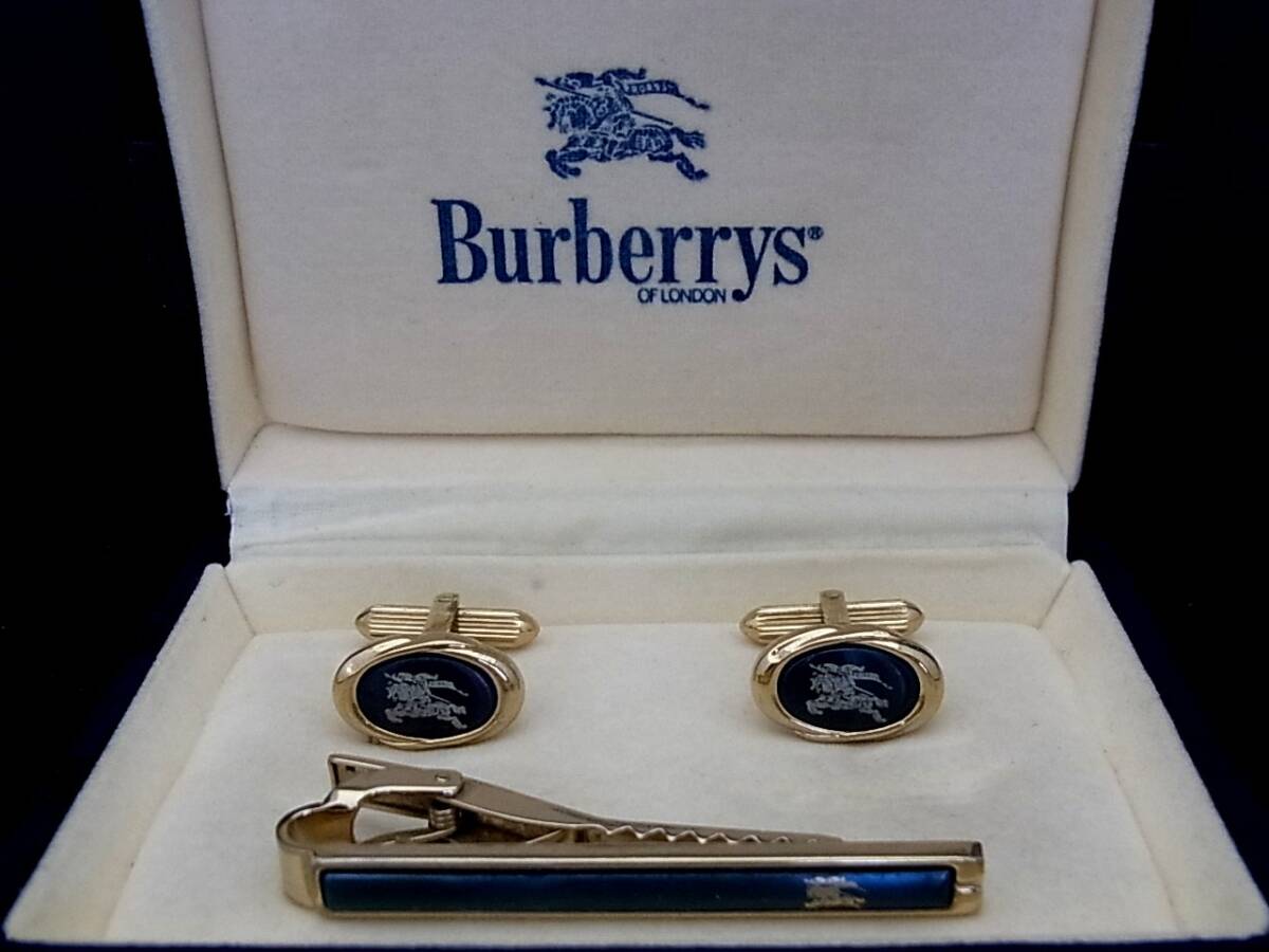 ■美品■№0255 バーバリー【ゴールド・ブラック】■カフス&ネクタイピン セット♪