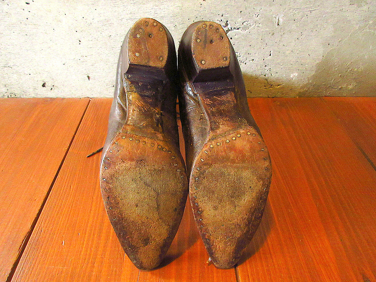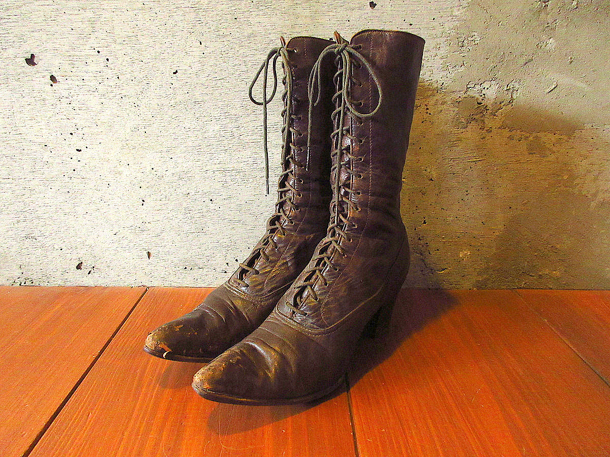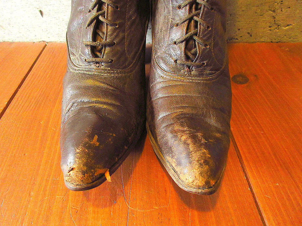 ビンテージ-20’s●レディースレースアップブーツ茶●240531k6-w-bt-225cm -1920sカンガルーレザーアンティーク