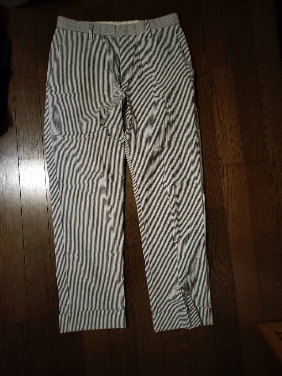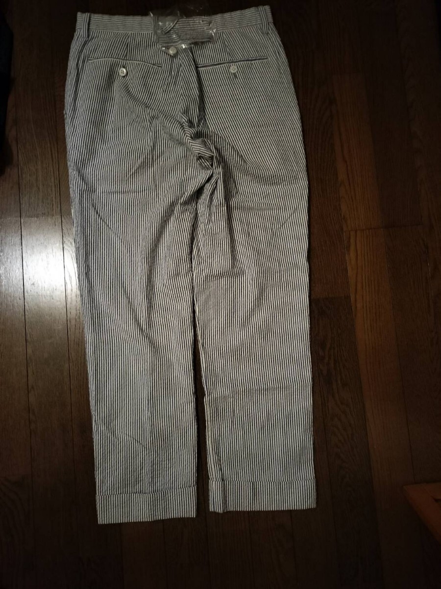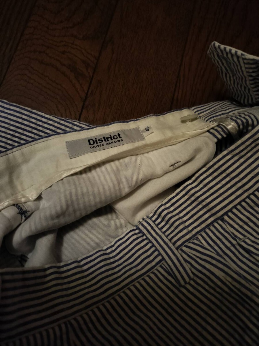 Districtのパンツです。お色は定番、白と青のストライプでノータック仕様です。